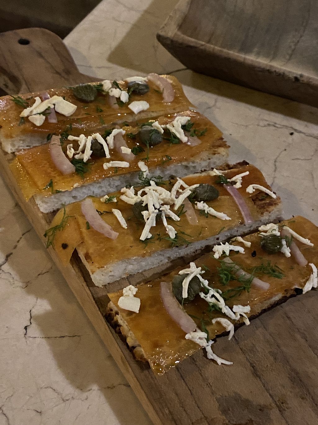 Smoked casava and cashew cheese canapé