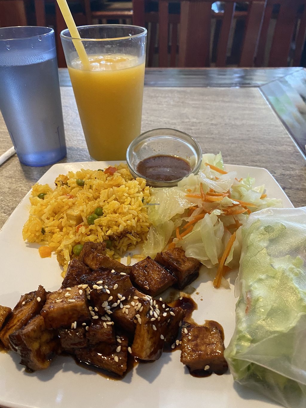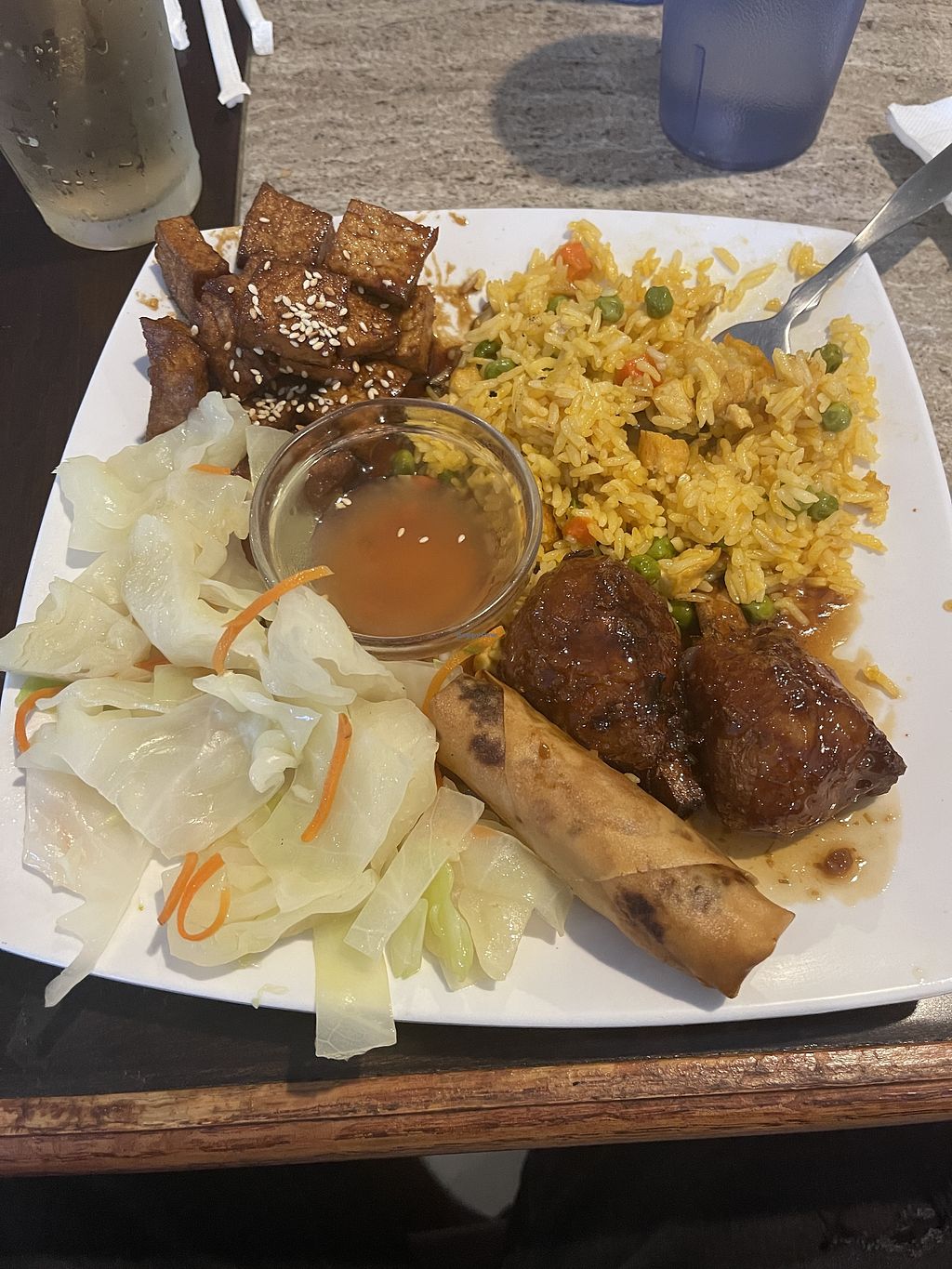 Was on a bike tour across Florida and rode and extra 4 miles to eat here. It was worth it! I had Combo 1, golden fried rice with veggies, fried tofu and a spring roll for $10.50. It was wonderful!