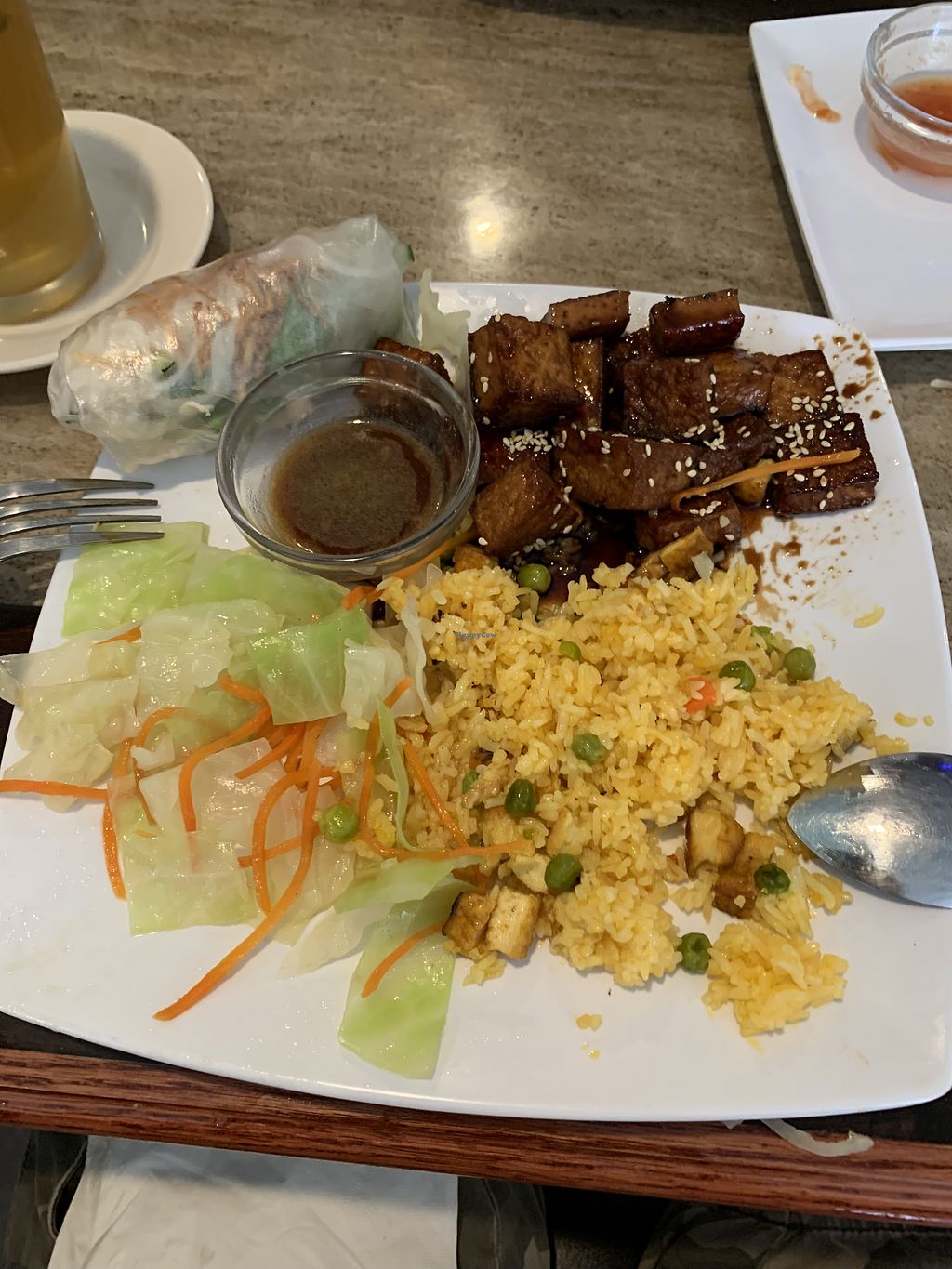 We drove through Clermont on our way back home to Illinois and needed some food. We stopped here and it wasn’t bad. We have definitely had better vegan Asian food, but it satisfied our needs. The pho was tasty and everything else was honestly just ok. Cake was delicious.