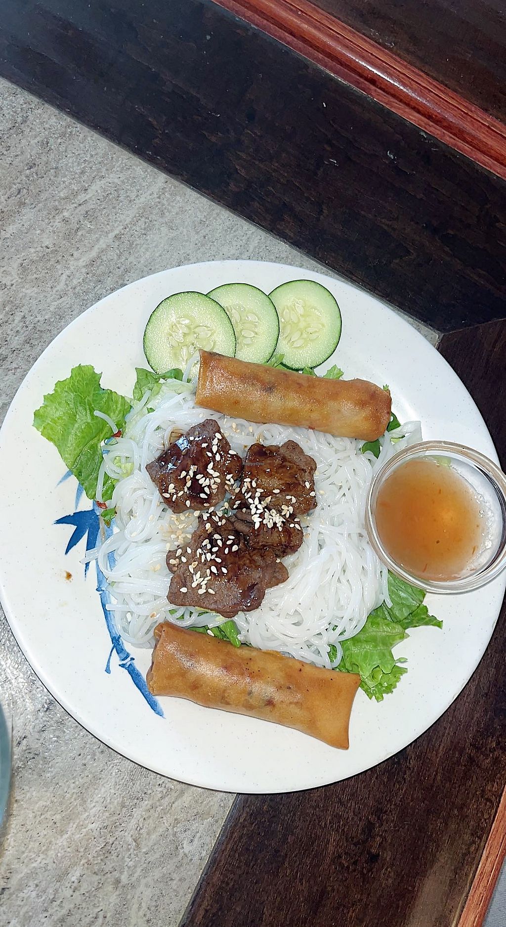 I love finding these little restaurants. We ordered the summer roll which was good. For our main course we ordered the pad Thai and BBQ curry. The pad Thai was good not spicy and didn’t really taste like any pad Thai I’ve ever had. It was more like noodles in gravy. It was good just unexpected. The BBQ Curry was. A lot spicier and we enjoyed it the most. We are plant based and so don’t really like fake meats. This restaurant had a lot of these.