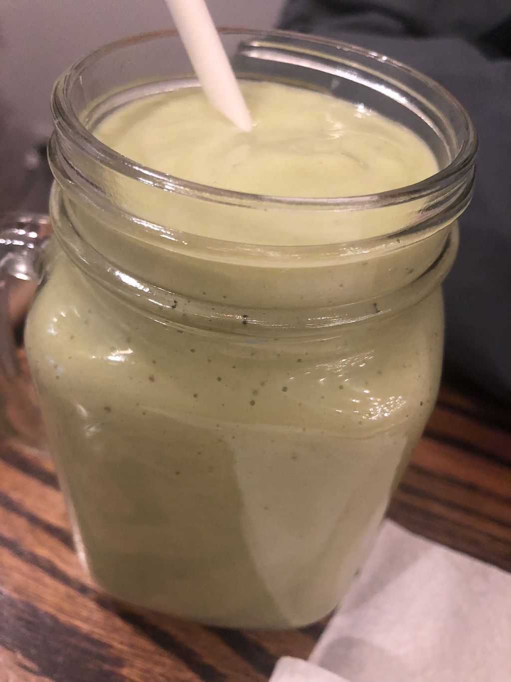 Loving hut smoothies - avocado, apple, banana, kale, almond milk