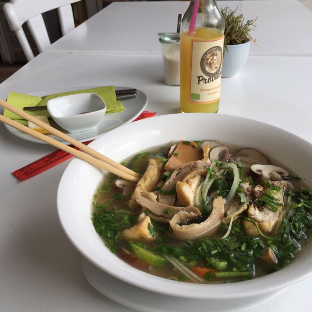 Excellent summer rolls, no garlic, two choices of sauces. Sushi; very good, self-made cakes (cheese cake, cherry crumble...). Super friendly owner, does not speak German well but is totally friendly & mild. Food quality is 100 of 100: fresh, fine. Smoothies very good. Few food items.