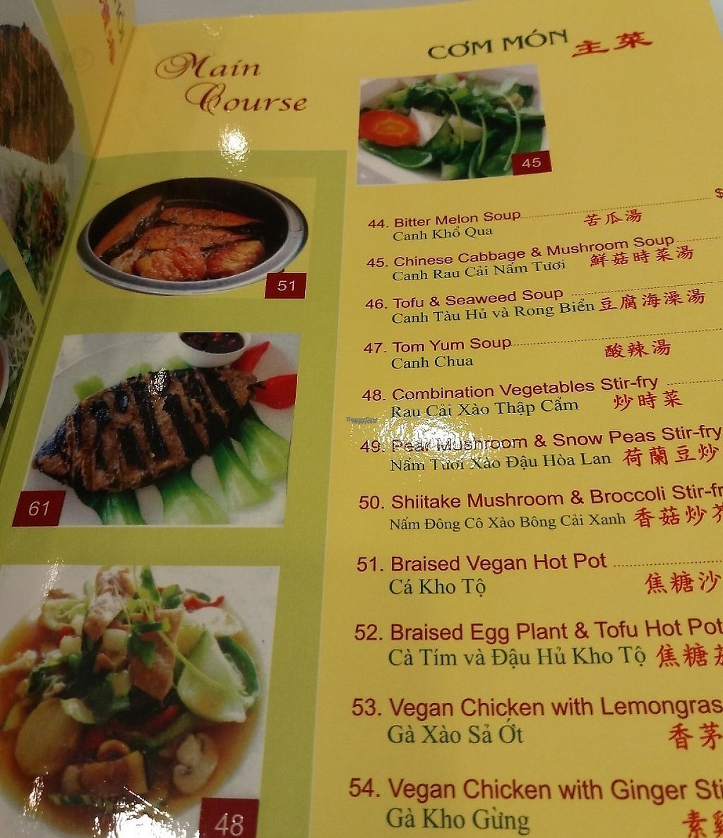 A page from their vegan menu