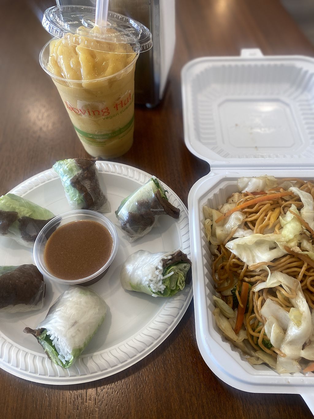 Top service and food, totally hit the spot post-run! I love how each Loving Hut is different and has their own vibe. Ordered mango smoothie; fresh spring rolls and the chow main with extra tofu.
