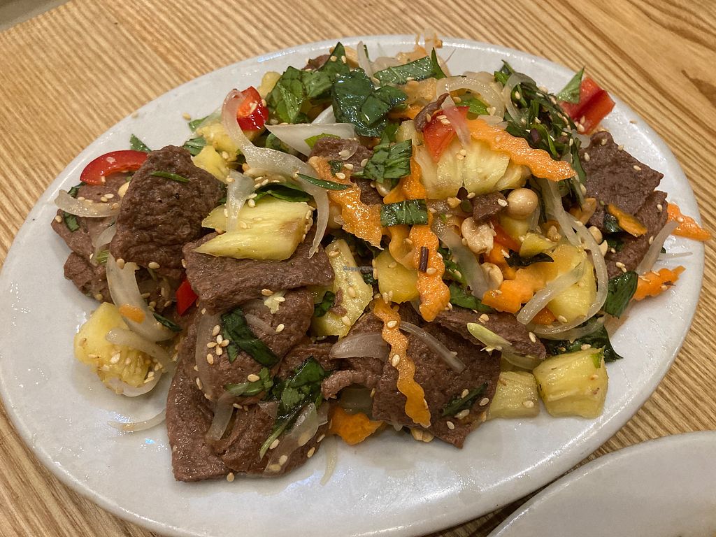 I was skeptical as the reviews aren't great. But this place was AMAzzzing. I had the chicken and corn soup and the beef salad. Both so delicious friendly service. Super busy which is a good sign! Prices are so good and they have a big upstairs area with more tables. They also have a buffet which most locals were eating. My partner got the sweet and sour pork ribs and omg they are a must try! Super amazing.
