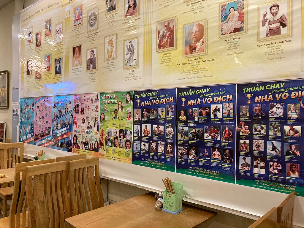 Small vegan food restaurant on 2 floors on a quiet street. Seats 20, sometimes TV is on. Uses seitan and mock meats in many dishes. Has English on menu. Formerly known as Nguon Coi. Seats 20, sometimes TV is on. Open Mon-Sun 10:00am-2:00pm, 5:00pm-9:00pm.