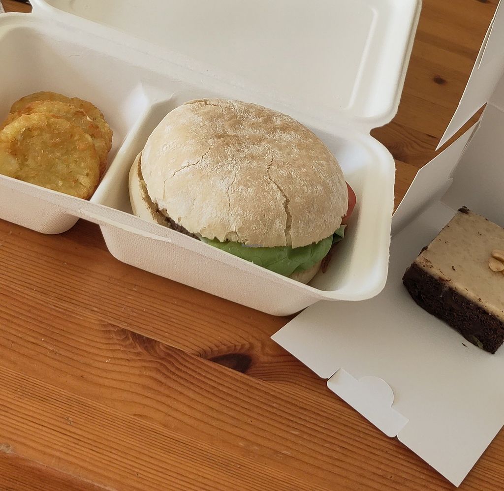 Seitan aigre douce divin ! tout comme le burger et la petite pâtisserie 💖