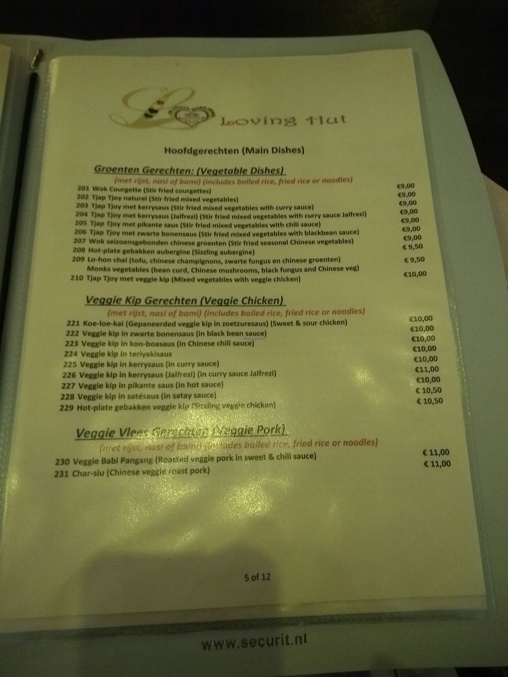 I ate @ the loving hut with my boyfriend and we loved the food! There were alot of nice Asian food options and the stire fried courgettes were really really nice!