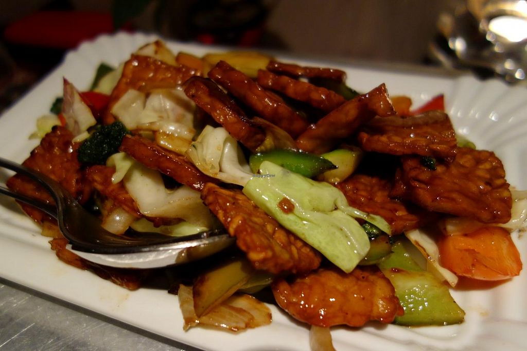 I had a wonton soup as a starter which I personally did not like too much since the wontons were very soft, or rather even disintegrating and had no distinct taste. I also shared some mini spring rolls with a friend, those were nice and the sauce was delicious. As main course I had tempeh with vegetables, it was good although it had quite an overload of tempeh and not so many vegetables - as a vegetable fan my personal preference would have been the other way round...
