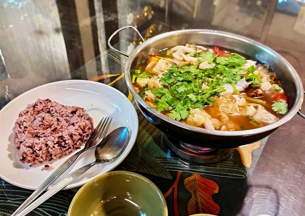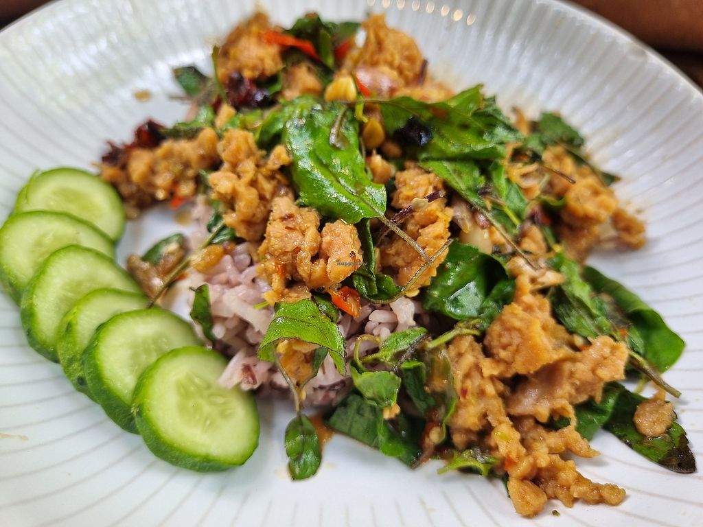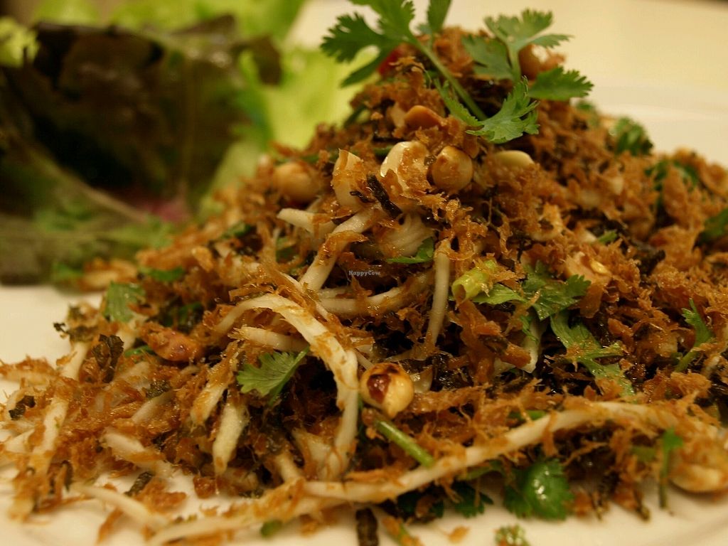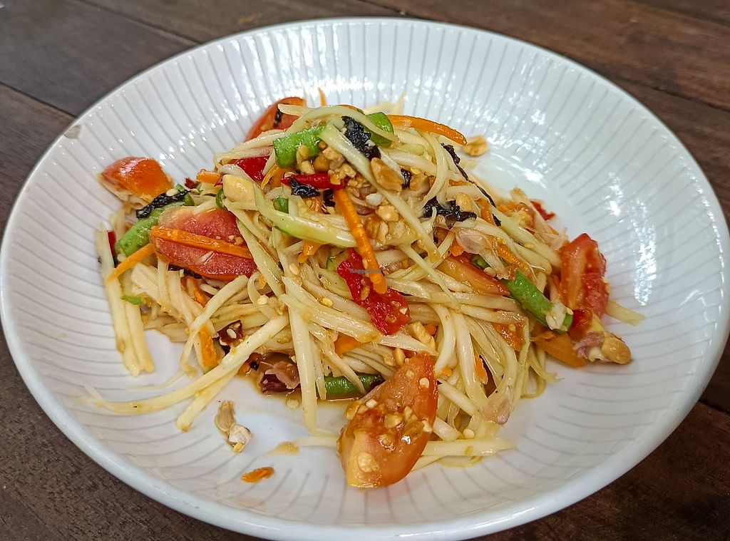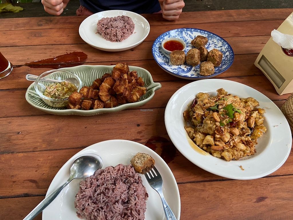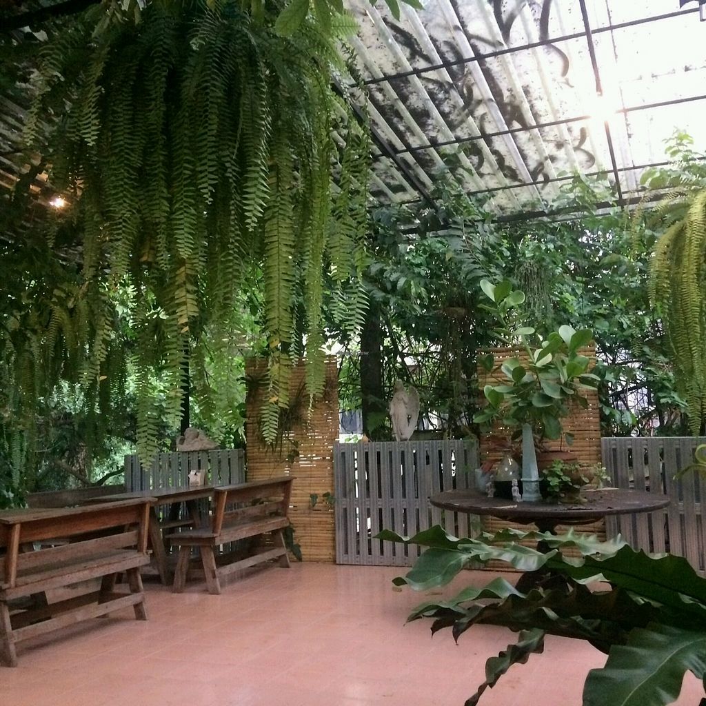 The restaurant is really pleasant, with plenty of vegetation outside. The food is cheap and consists of faux-meat dishes and Thai food. I had the spicy fried tofu, some seitan with black pepper and a dish of hot tofu and vegetables. They were tasty and fresh but portions are not huge. I also took the passion fruit and mint smoothie that was excellent. The staff is friendly but do not always speak English. On the whole, it's a good place because it's cheap, 100% vegan and pleasant.