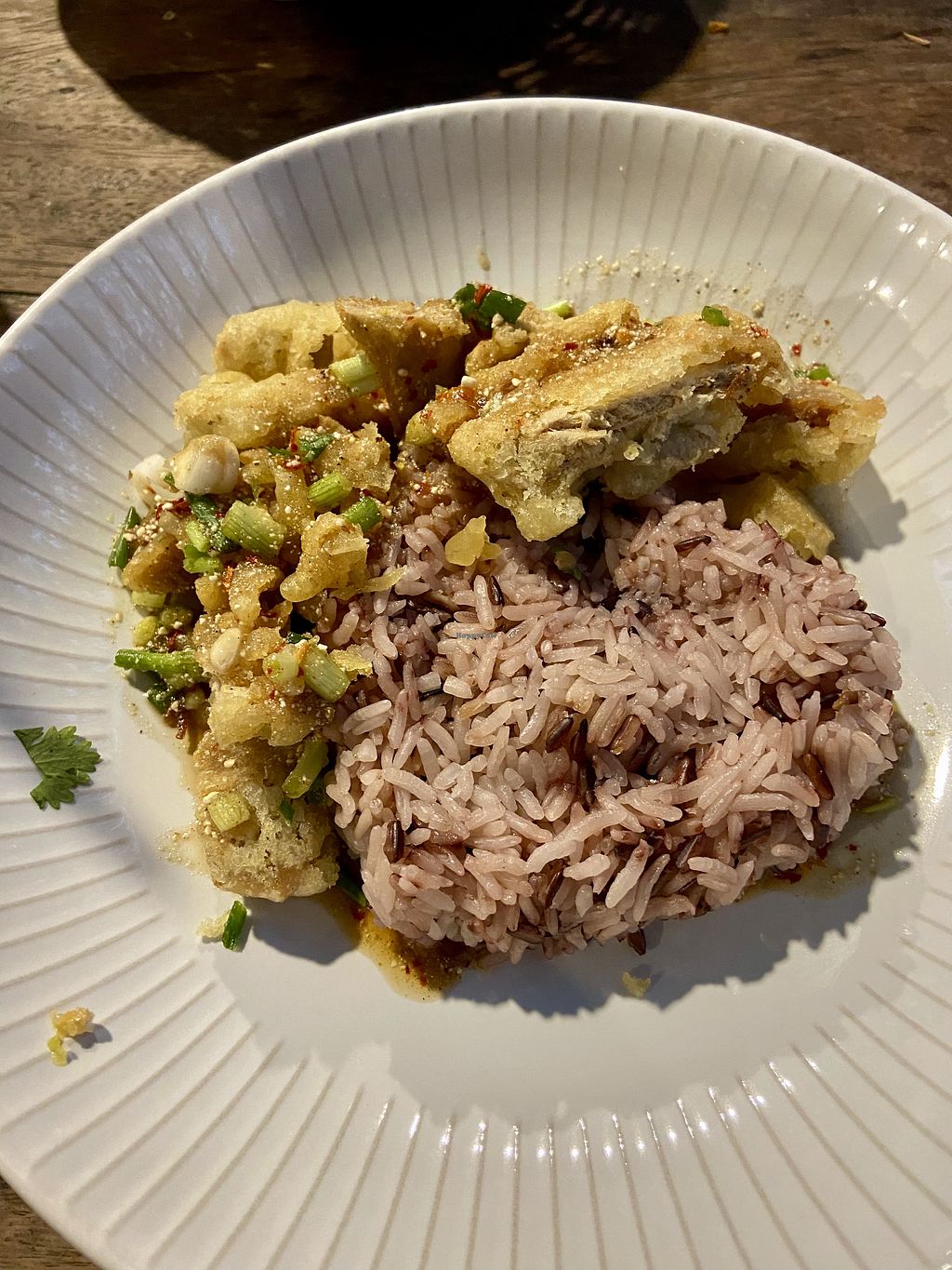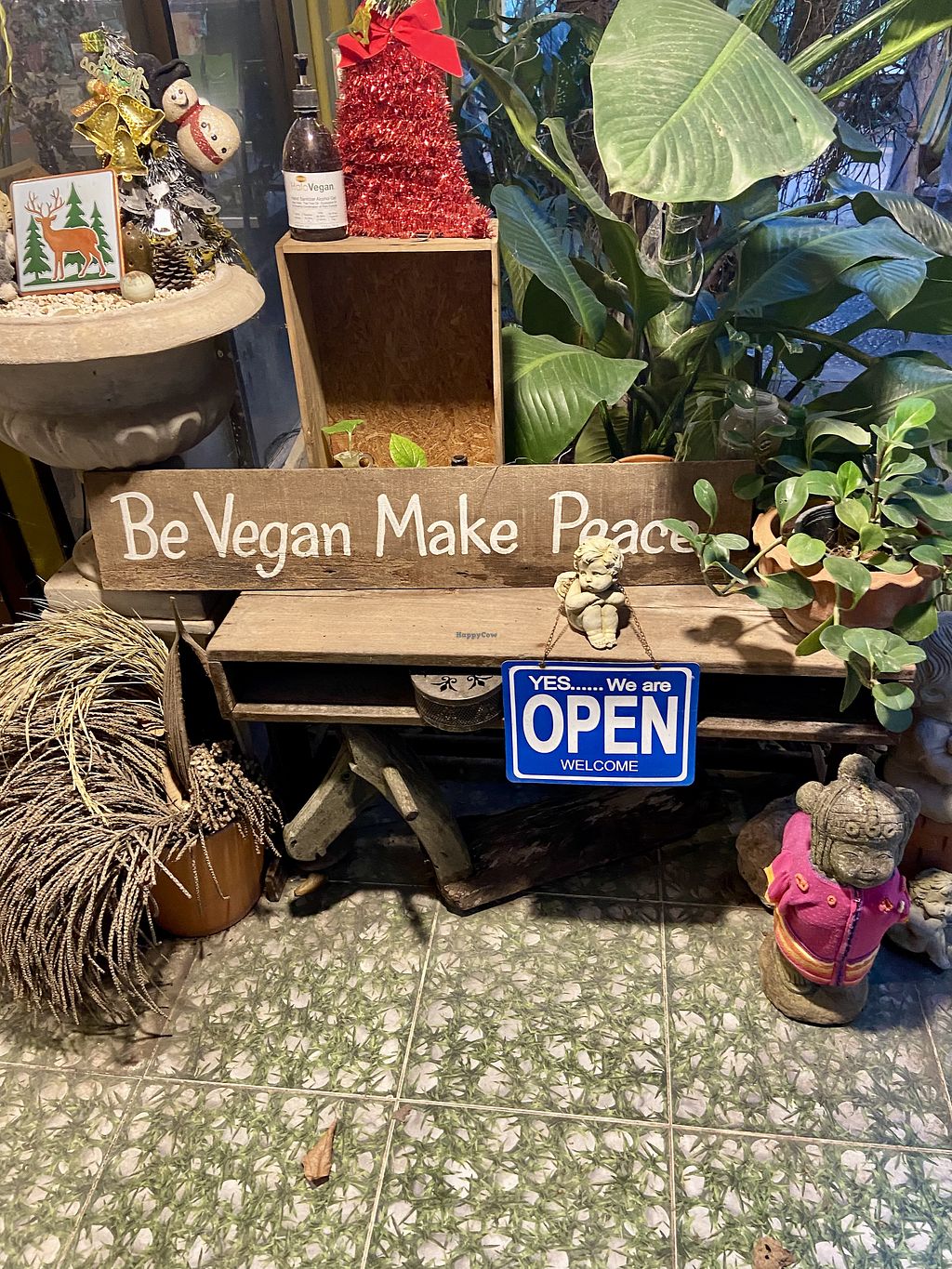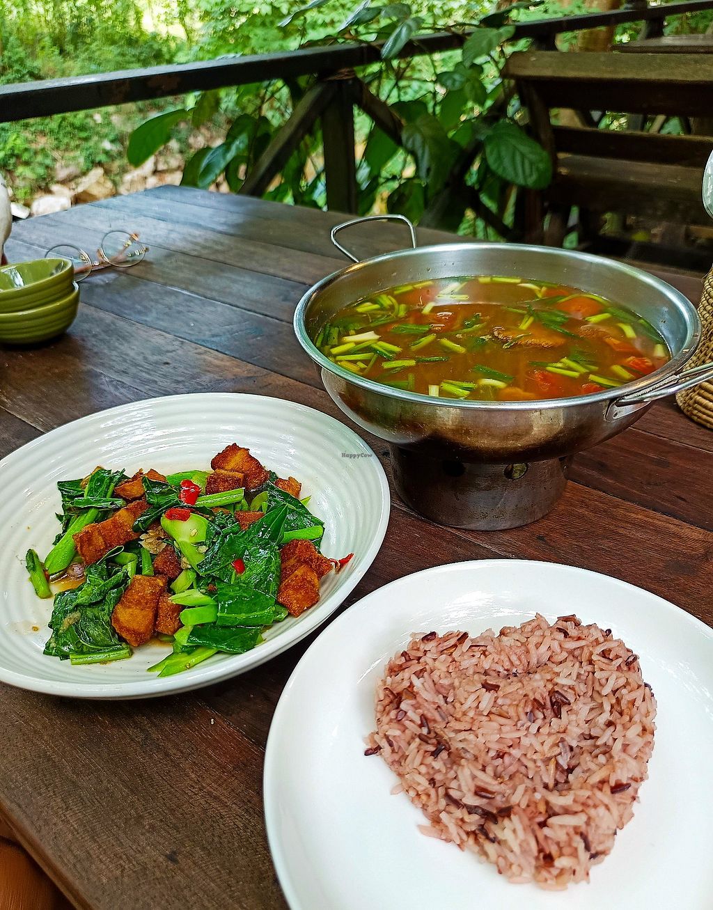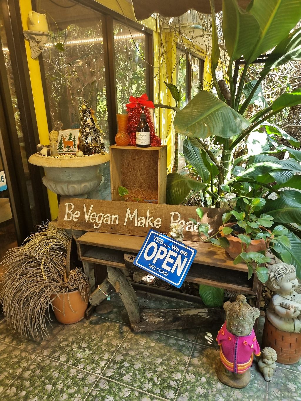 The restaurant is really pleasant, with plenty of vegetation outside. The food is cheap and consists of faux-meat dishes and Thai food. I had the spicy fried tofu, some seitan with black pepper and a dish of hot tofu and vegetables. They were tasty and fresh but portions are not huge. I also took the passion fruit and mint smoothie that was excellent. The staff is friendly but do not always speak English. On the whole, it's a good place because it's cheap, 100% vegan and pleasant.
