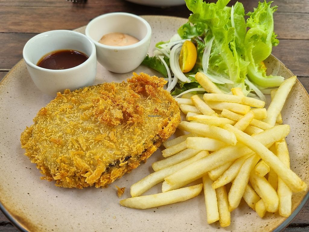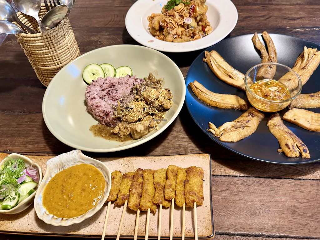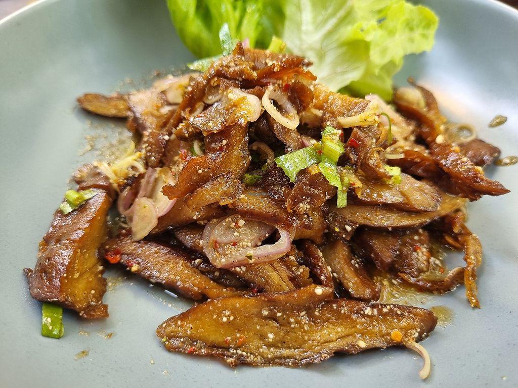 I was so happy we could visit Loving Hut in Pak Chong again. I've been dreaming about their crispy fish steak and chips for years. Today, we also had the pad kapow, tofu satay and the spicy vegan duck salad which may have been the best Thai salad I have ever had.. wish they were closer to Bangkok. Everything was aroi maak.