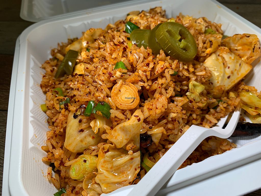 Chili Garlic Fried Rice w/Tofu, Cabbage, Green Onions, Dried Chili & C…