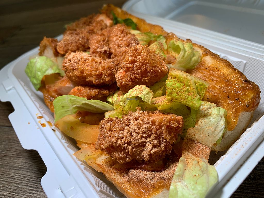 Po' Boi: Vegan Breaded Shrimp, Lettuce, Tomatoes w/ Housemade Cajun Sa…