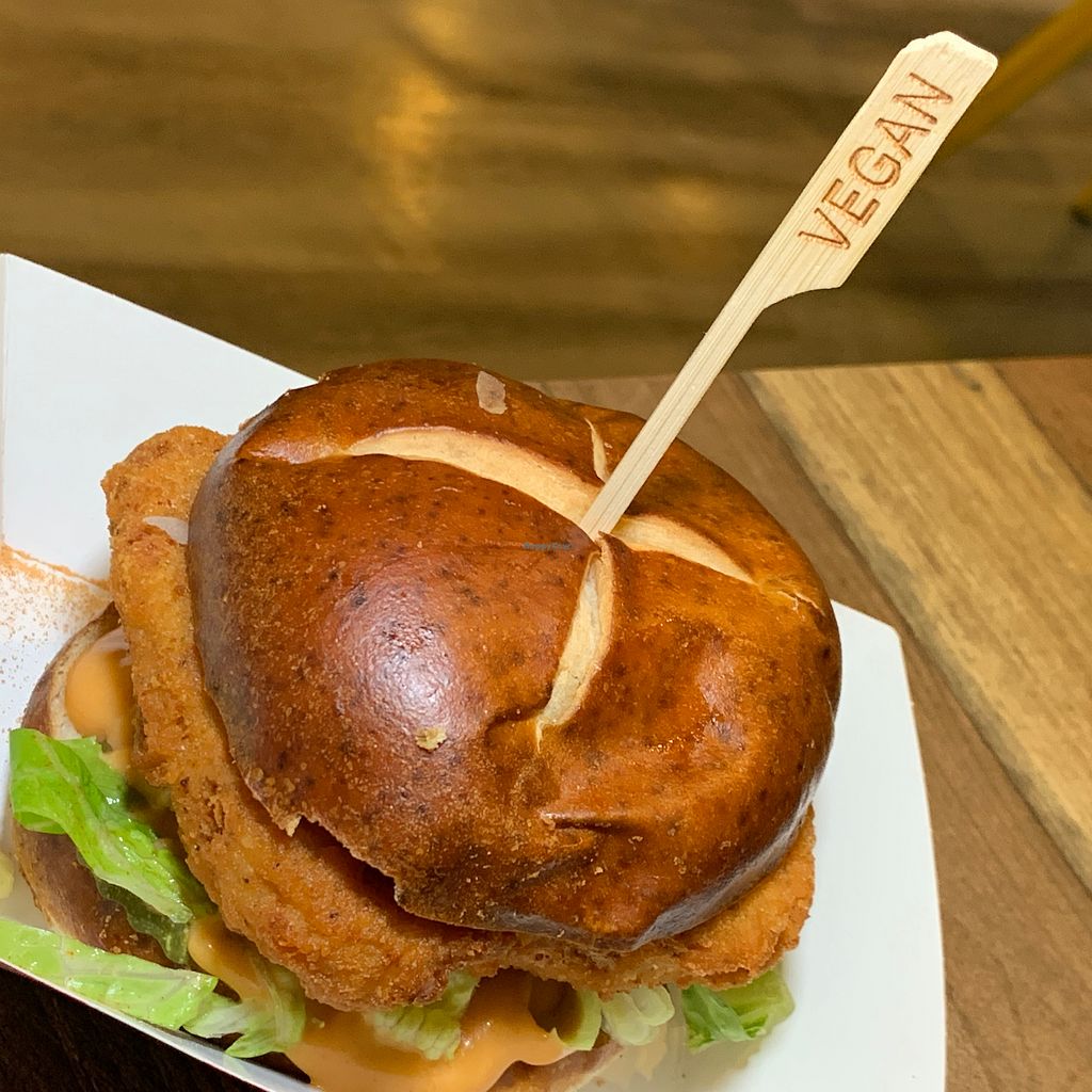 Crispy Burger: Crispy Vegan Chicken, Lettuce, Onion, Pickle, Ketchup, …