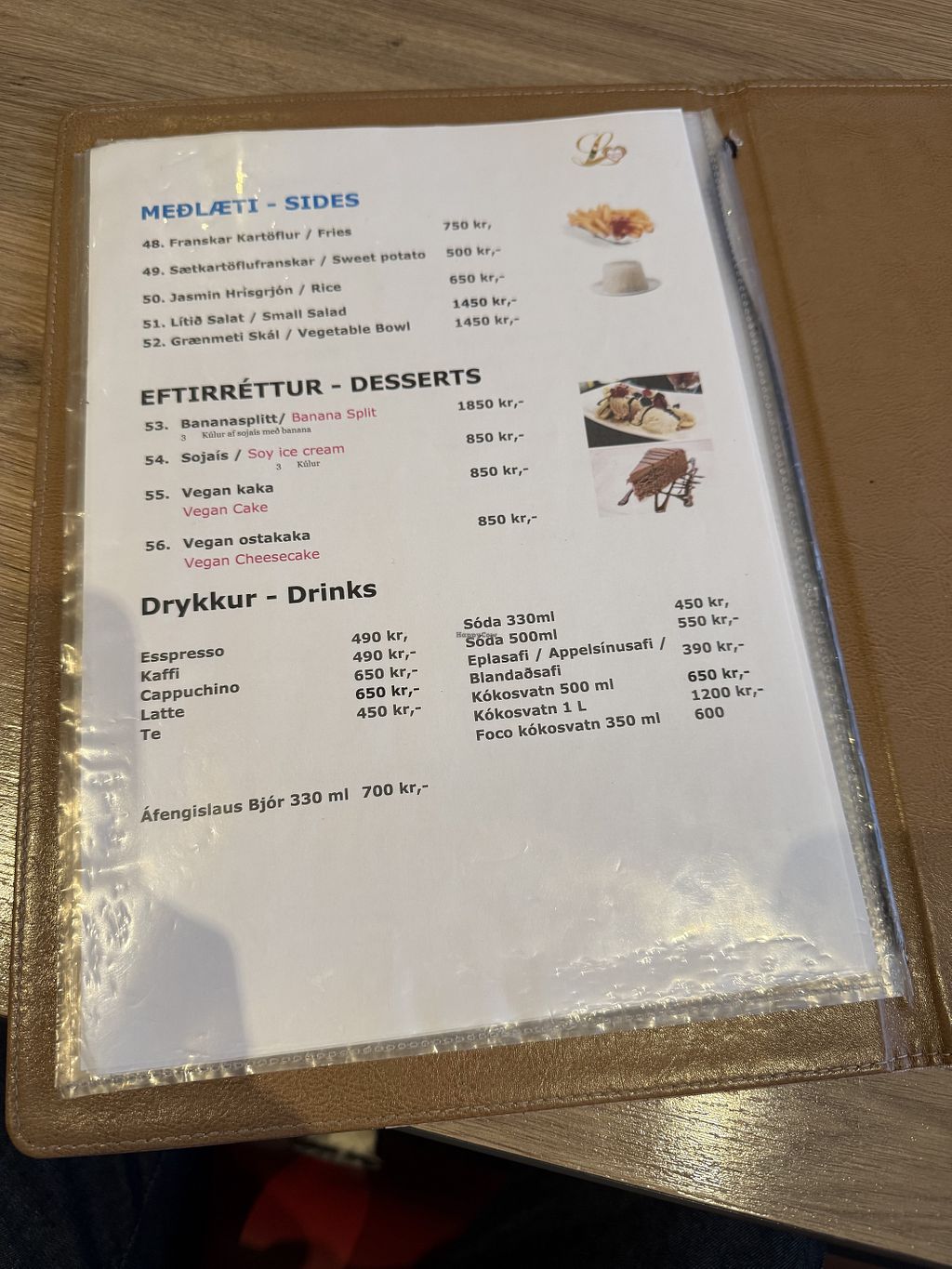 We ate here 2 times during our stay in Reykjavik and both times we both enjoyed our dishes so so much!! Al was so tasty and big portions and also the prices were not too expensive compared to most prices in restaurants in the city.