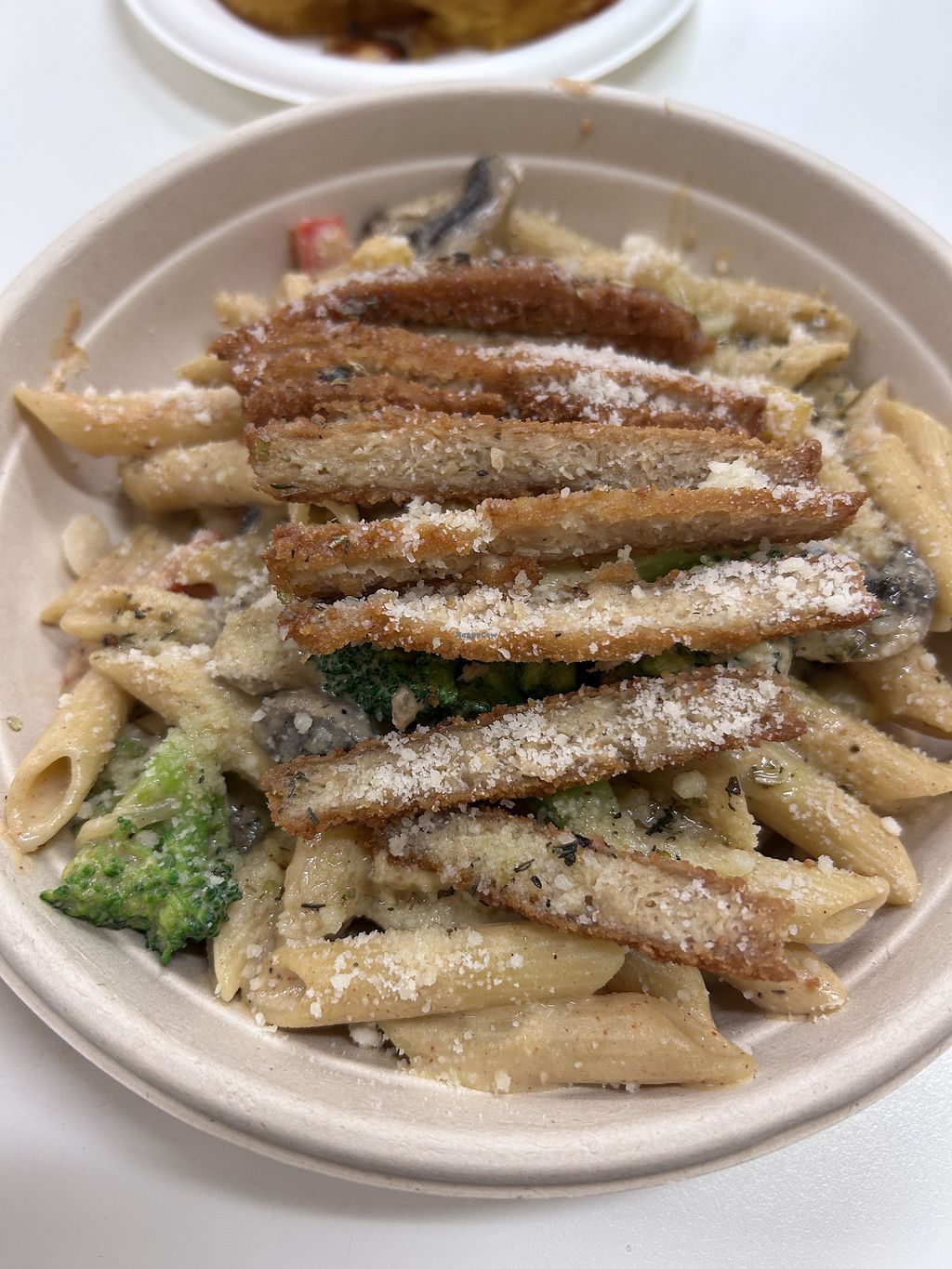 Fettuccine Alfredo (cashew sunflower cream sauce, fettuccine, baby spi…