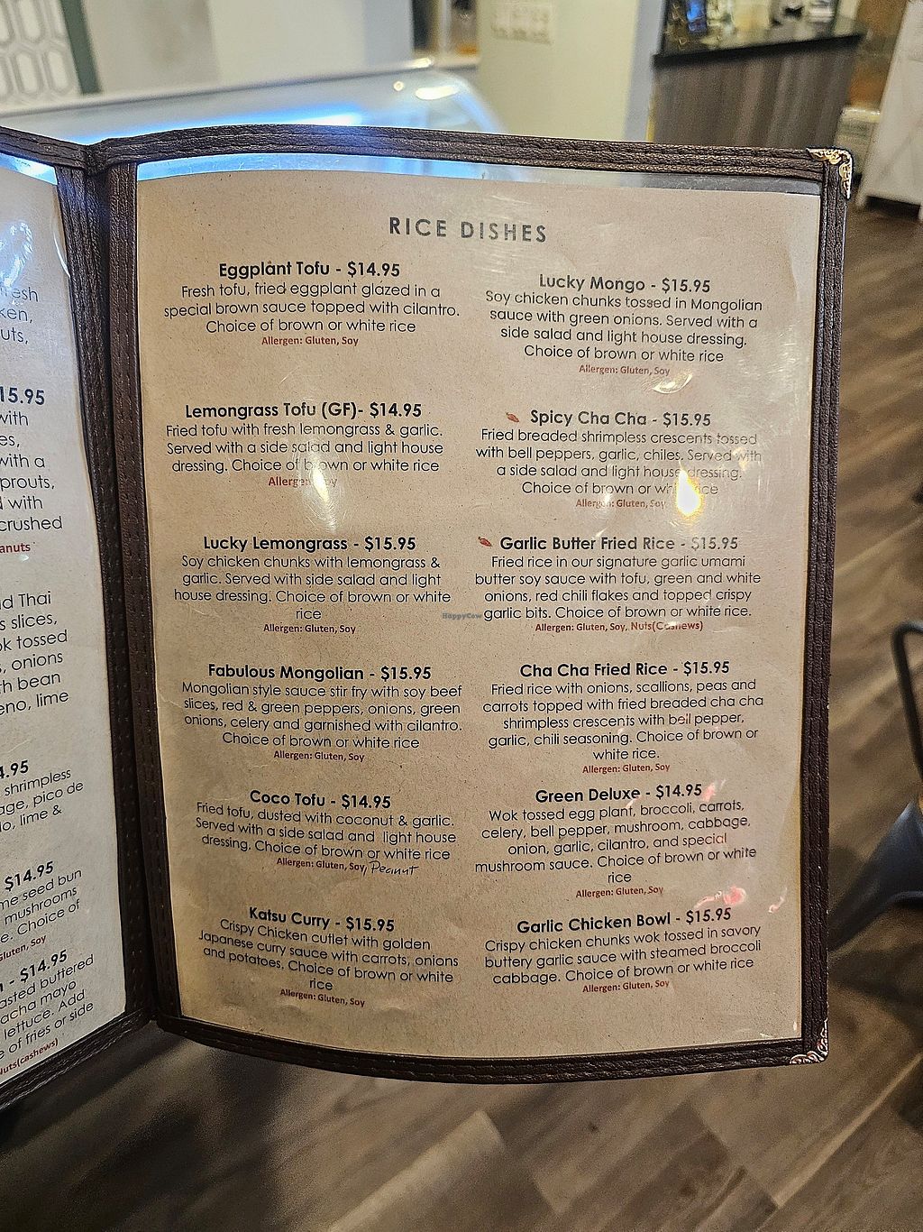 Cons: Soy-based meat alternatives. , Lots of deep fried/fried dishes.