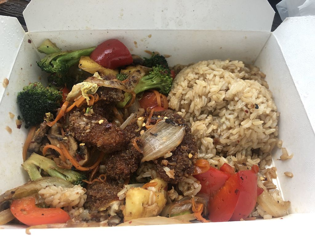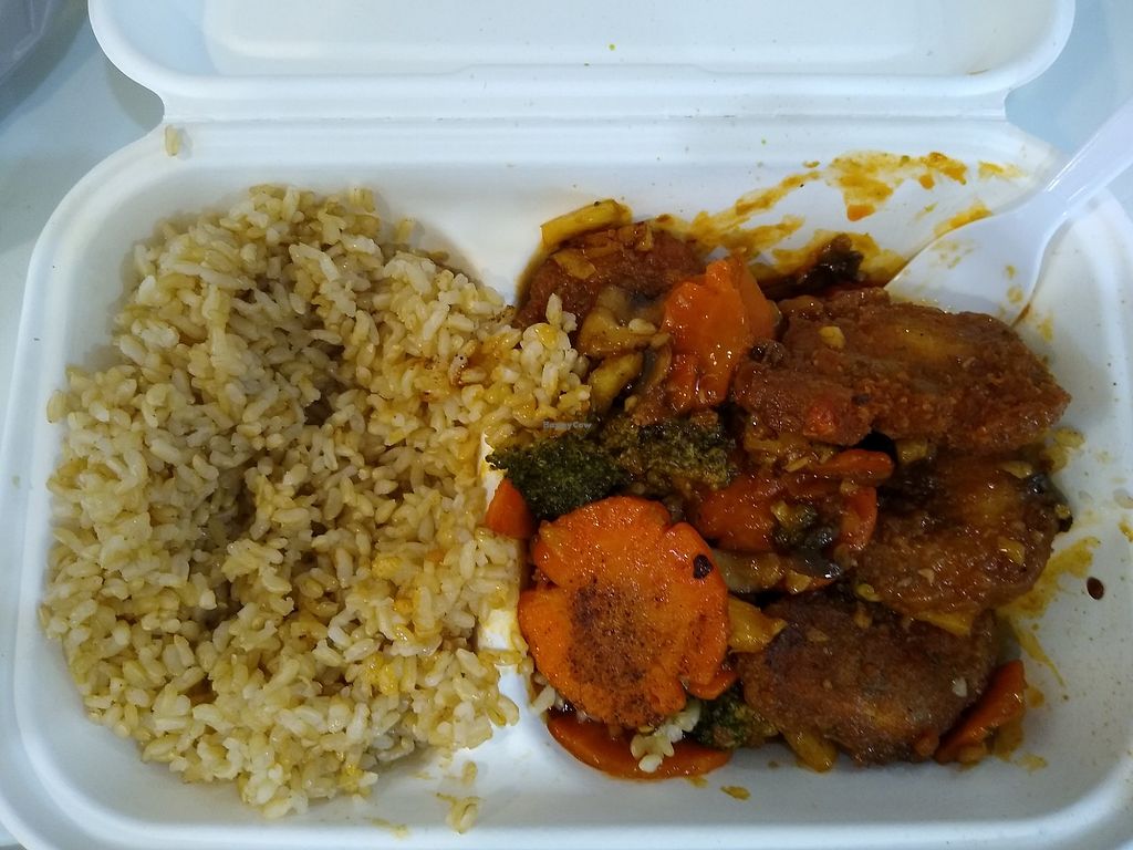 The food was delicious. The seitan was so chicken-like that I actually got sick after eating it... lol. The owners/employees were very friendly. Loved the vegan posters around the restaraunt.