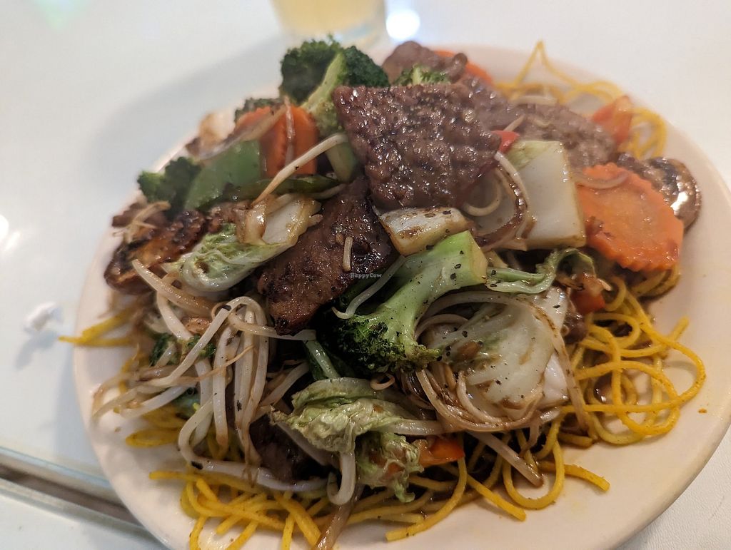 Stopped as per reviews on happy cow. To look at the place many would turn and run. As a vegan you'd be doing yourself a great wrong. Everything is vegan here! I had the spicy shrimp and my non vegan friend had the yellow noodles. We both absolutely loved out meals. For me it was a bit salty but good.