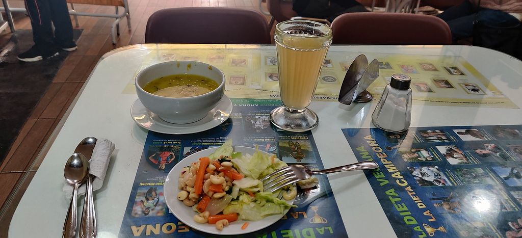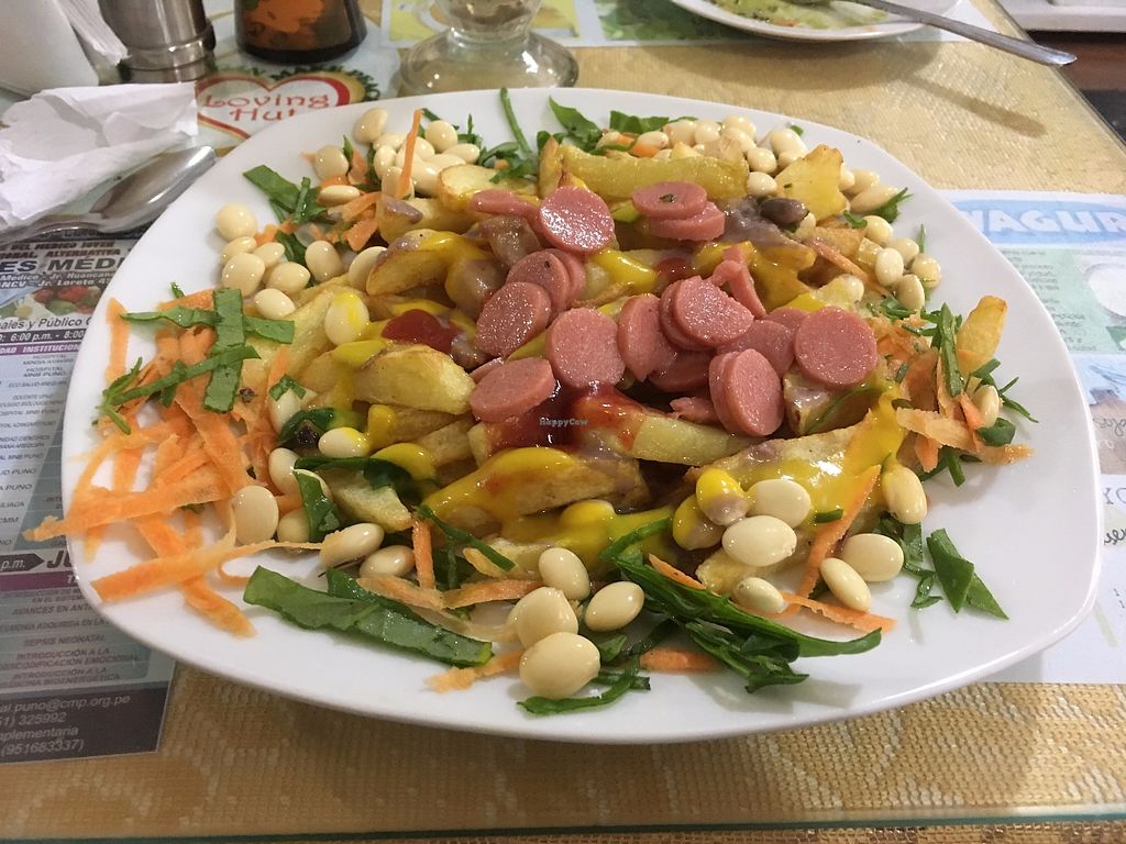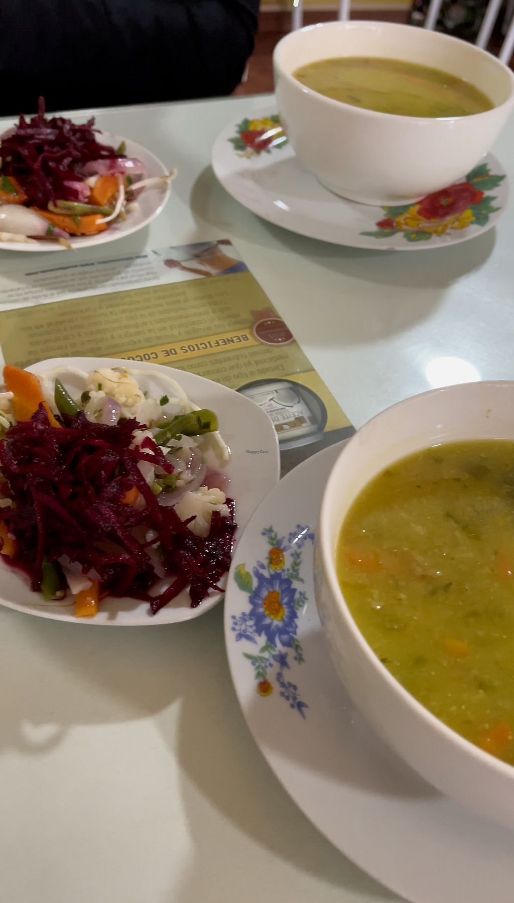 I think people have mentioned the set menu but I didn’t realise that it was the only option here, so that’s good to note. Got a quinoa soup, salad, and for our main we chose the fries with vegan hotdog which was delicious. Was very happy to find some vegan meat in this town! All that and a drink was only 20 soles (cash only) so I call that a bargain. Very friendly service, and the place was popping off with locals so was nice to go somewhere the locals enjoy too (not a tourist trap at all!).