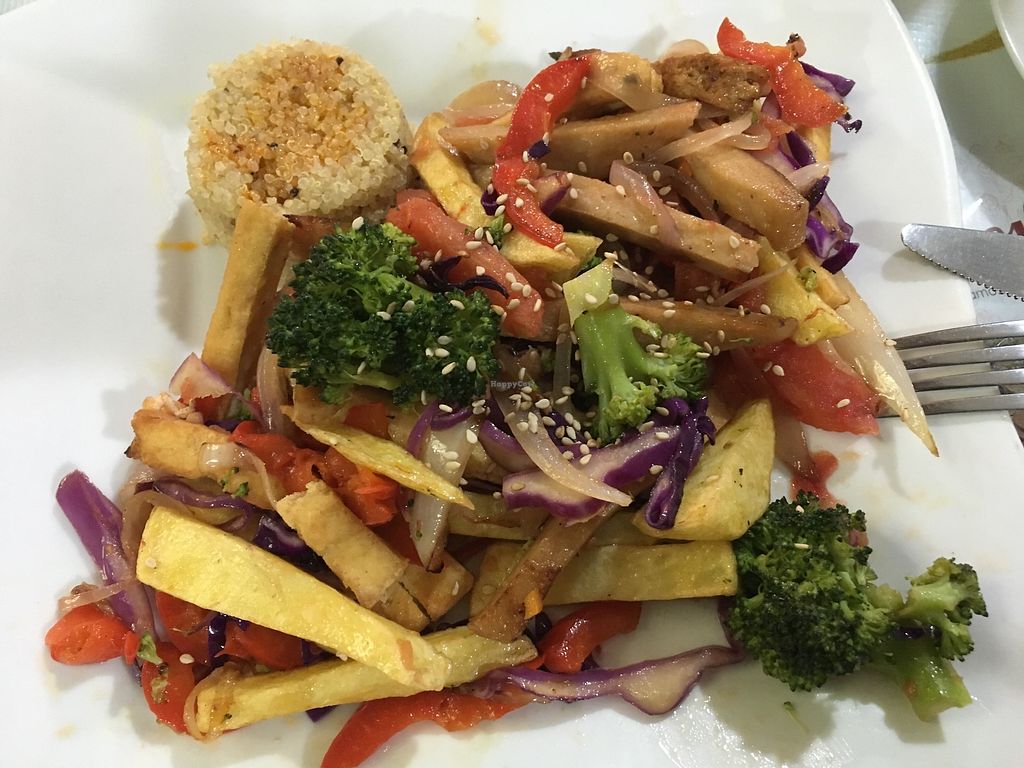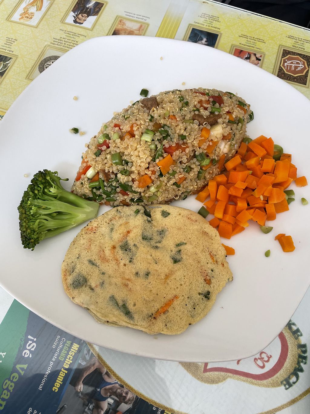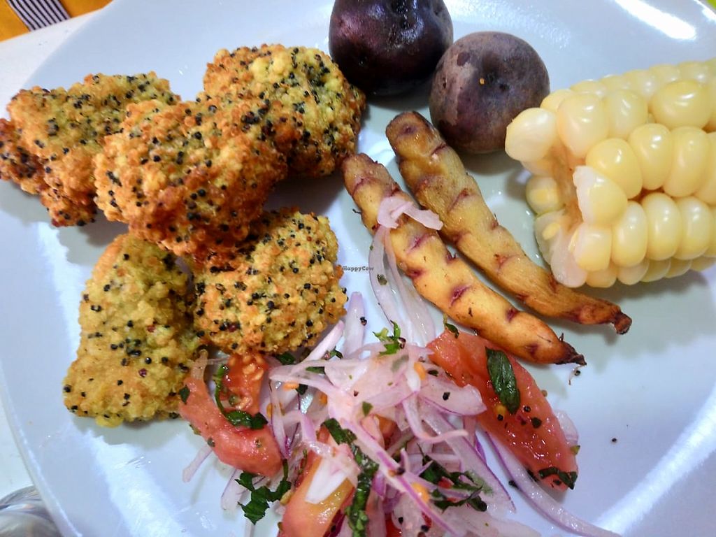 Considering Puno has extremely limited vegan options, this is a good one. Some of the staff speak english. We ordered two menus (a menu includes a salad, beverage, soup, main, and a dessert). There were 10 options for the main, we chose Inka special (veg meat, baked carrots, potato, sauce, salad), and bean curry (included half of fried plantain). Both were alright but a little cold. There was a choice of two beverages (herbal tea and passion fruit hot drink) both were very good. We didn't get desert until we specifically asked for it and it wasn't very good (veg gelatine of apple-cinnamon flavour) - they served it to the locals without delay. They only take cash.