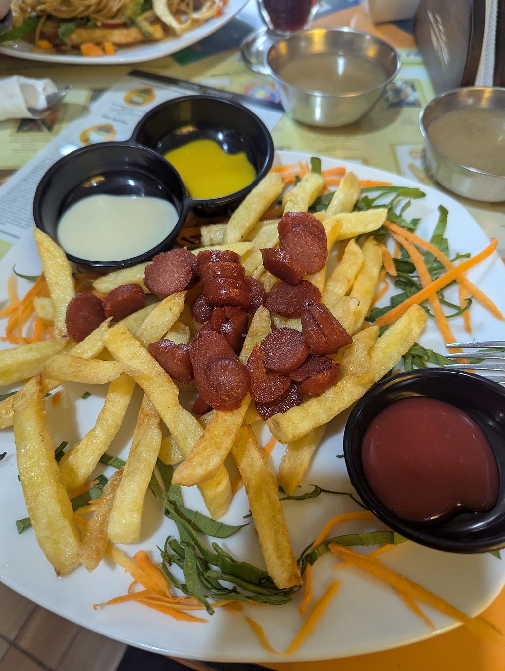 The food was bad too. My teeth hurt from eating the hardest chips. The sausages were bad too. My partners and sisters plates were also below average.