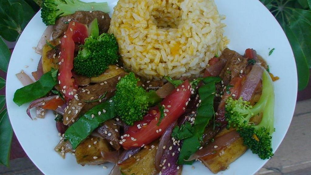 Rest con Menu vegano. Buen precio y variadas opciones de platos peruanos. Tiene 2 plantas y bastantes mesas.