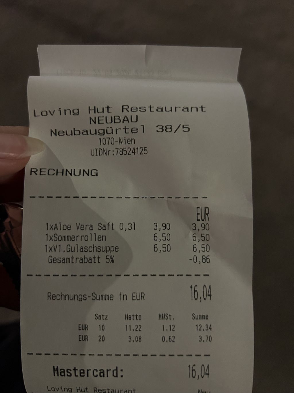 We tried Tom Yam, Save Chicken, Doner Teller, Thai Basil Tofu, Pho Tofu Soup, Wiener Schnitzel. All was good and decent, Tom Yam was above all - pretty spicy ! We tried also 3 different cakes and they were also pretty good. However i could not find any main/side dish to make me return. Regardless it is so far best vegan rest in Vienna i found so far