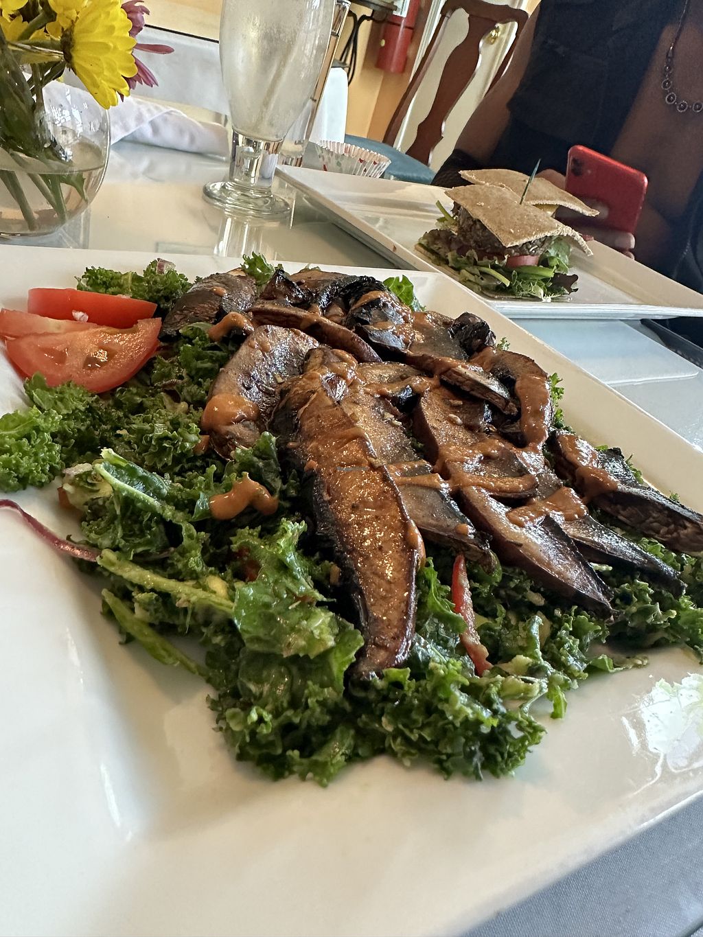 Rich and flavorful food with lots of variety. Everything cooked from scratch. Had the stuffed portobello mushroom caps appetizer, falafel “boats” special and hubby had Sage burger on flax bread. So delicious and healthy! Then we ended with lemon bars. Delicious!