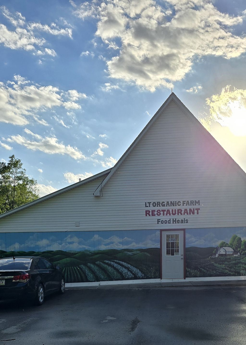 Serves meat, vegan options available. Family restaurant located on the LT Organic Farm. Menu is seasonal and uses freshly harvested veggies from own farm. Completely lactose free and gluten free with choices for vegans (please inquire). Walk ins are welcome but reservations are appreciated. Seating available inside and outside in the garden under gazebos. Pet friendly. Accepts cash and checks only. Host birthdays, weddings and other functions. Seasonal opening only, May-Oct. Check ahead.