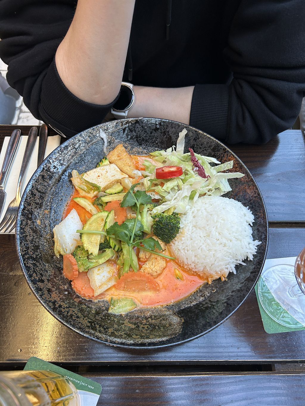 Wir haben ein Curry und ein Nudelgericht gegessen. Während das Curry sehr lecker war, haben mir die Nudeln leider nicht besonders geschmeckt. Die Bedienung war auch eher ok.