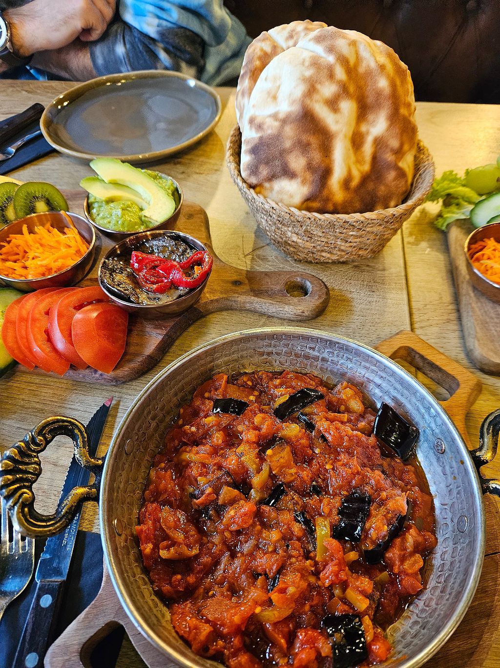 We went for breakfast and had two different dishes, the vegan breakfast plate and a meneme with aubergine.