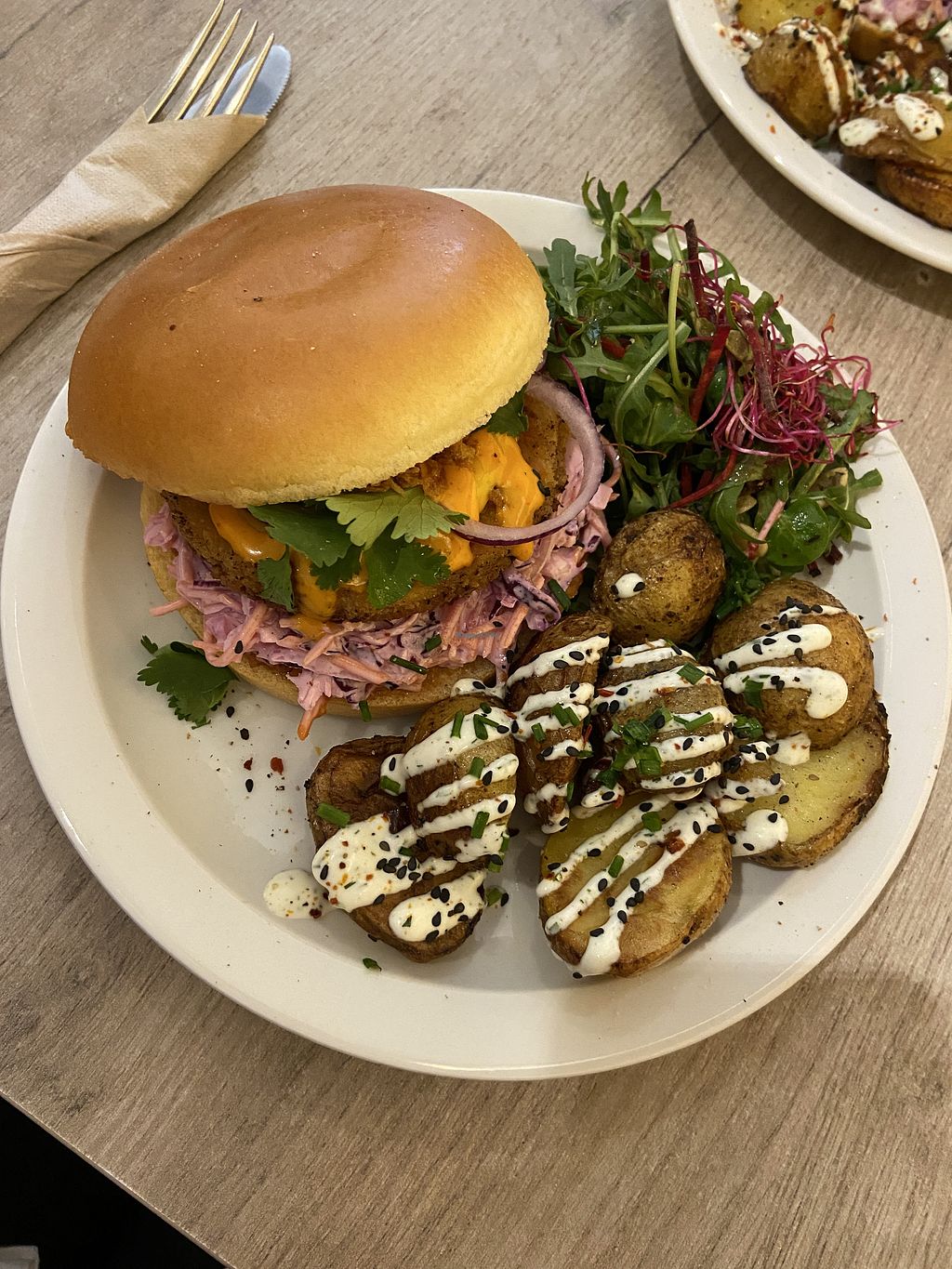 Quiche with cauliflower, caramelized onions en vegan bacon, served wit…