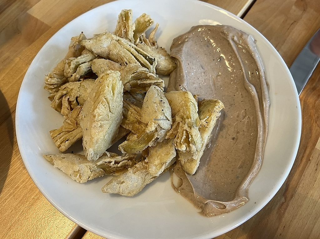 Loved the server here who was so accommodating with the 6 month old we brought. This was a great place to bring omnivores as there’s a little of everything. Great pizza, salad, fried artichokes, and tiramisu. The place is lovely, peaceful and calm. They also have a vegan Parmesan. We will be back for sure. It was very quiet on a Tuesday night with only a few other customers.
