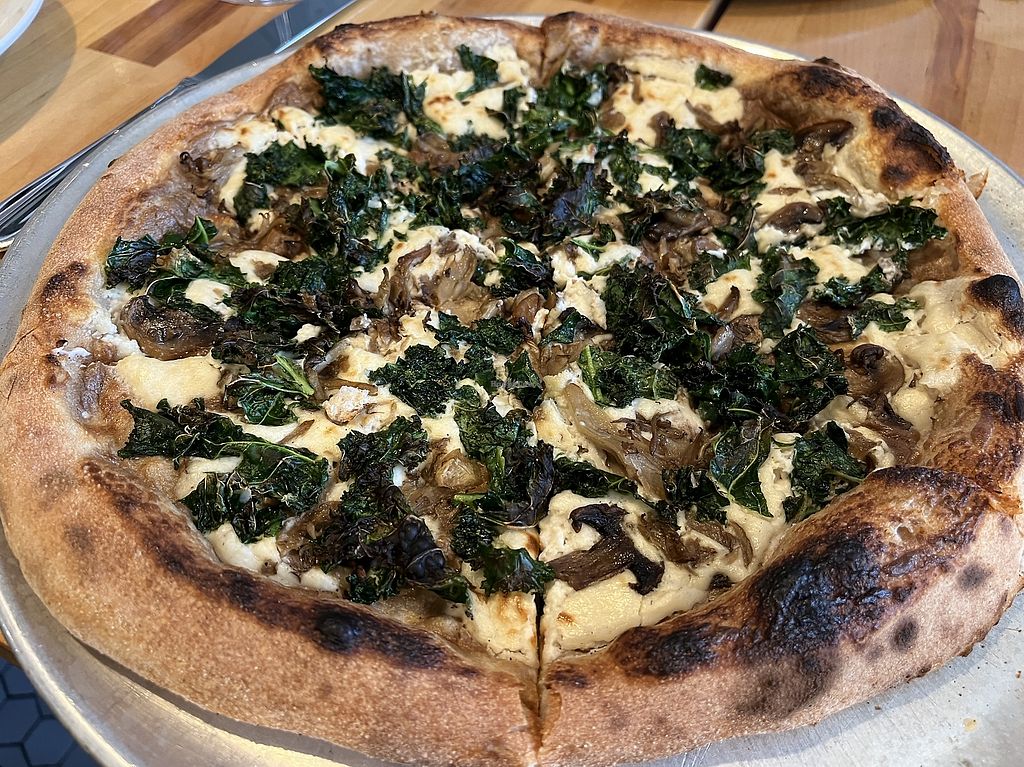The truffle mushroom pizza was delicious and they had a vegan Parmesan to add to it also. The Brussel sprouts had a mushroom bacon but I wished it would have been a little crispy