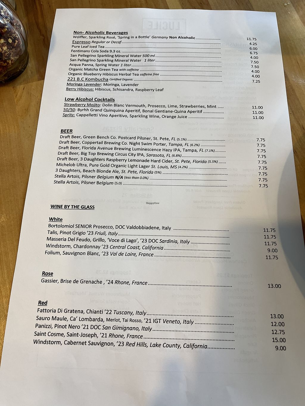 Lucile has delicious vegan pizza. Most of the menu is vegan by default, but non-vegans can build their own pizza with their choice of meat and veggies. There gluten free crust is delicious and my husband and I get it every time we go even though neither of us is gluten intolerant. We like it better than the regular crust. This is one of our favorite restaurants in Sarasota.