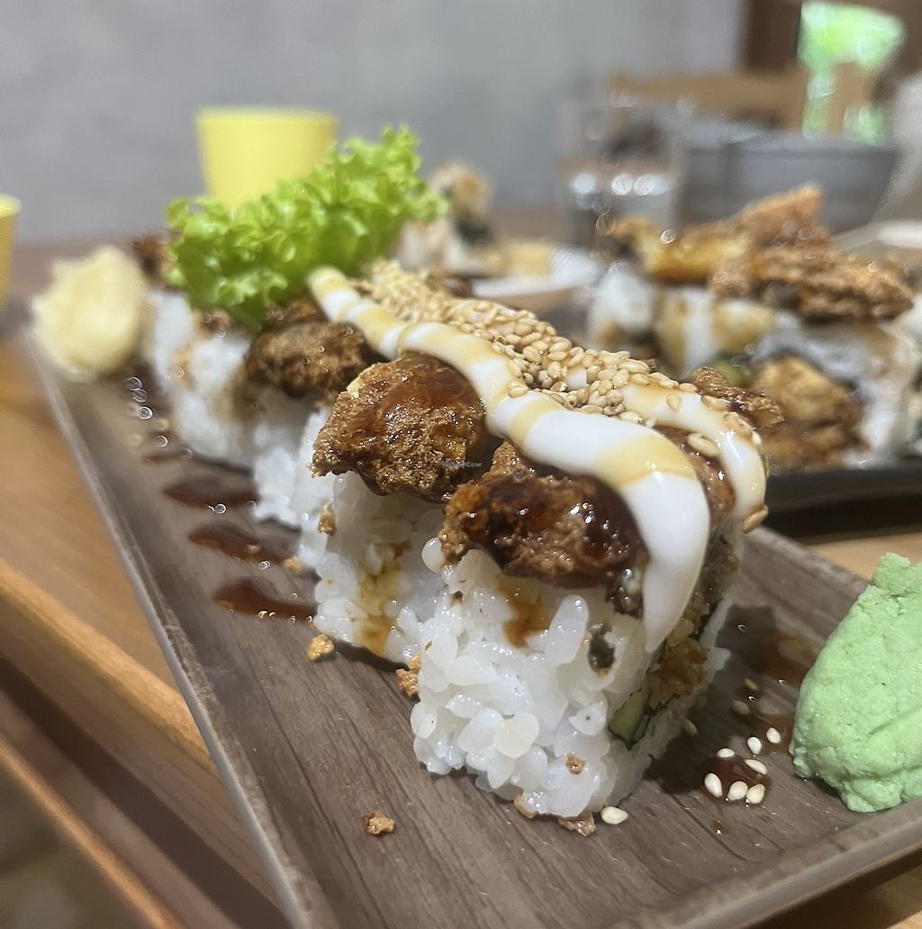 Tried the tofunagi maki! Honestly really hard to find vegan jap food around so I am super happy to find this place. The food was very affordable but this is definitely more of a “sharing” type of place for friends/ family. Eating a whole maki on my own got a bit ‘jelat’ at the end but still delicious and would recommend! the chocolate sorbet is super good😄and there’s free water too