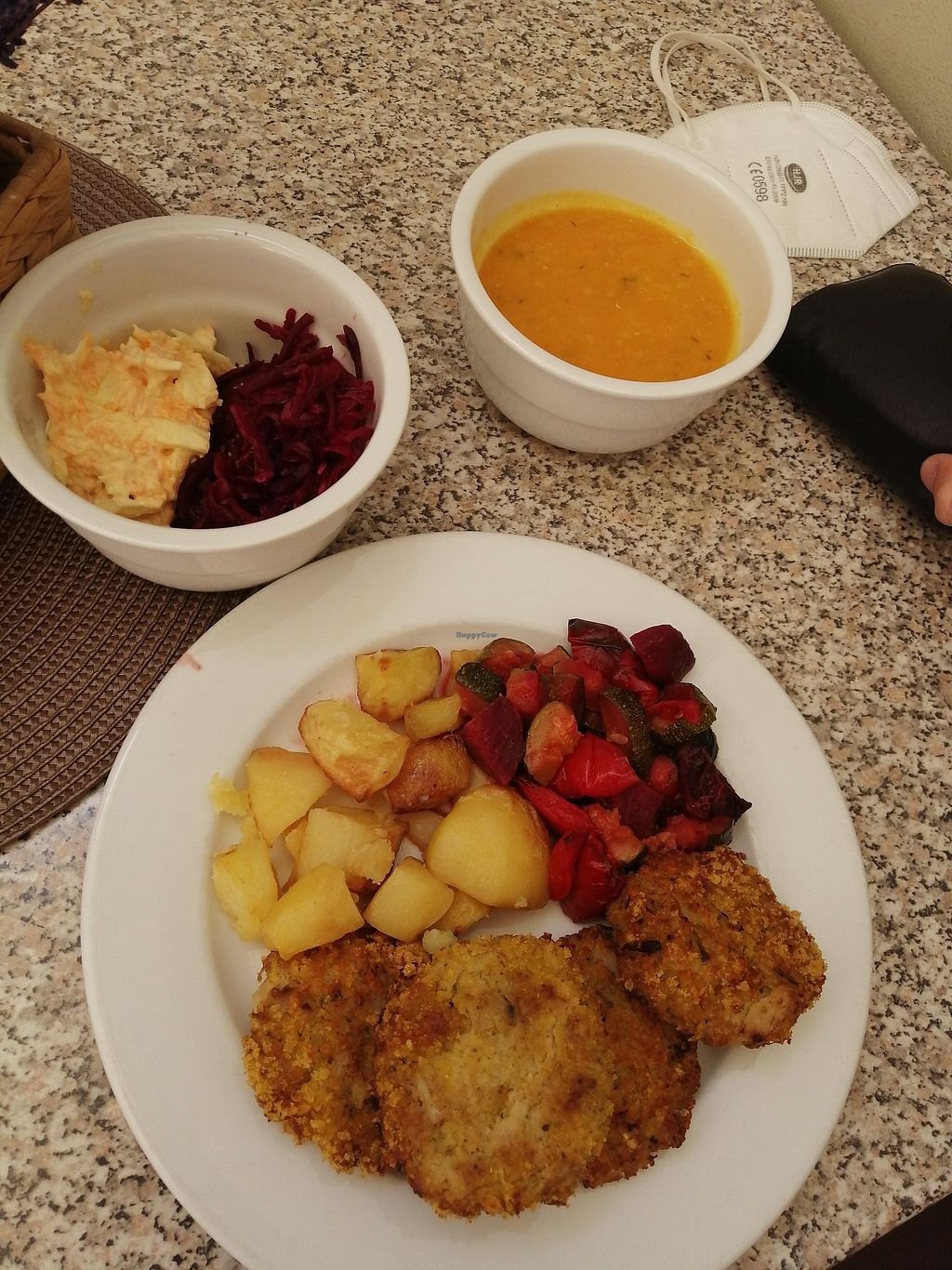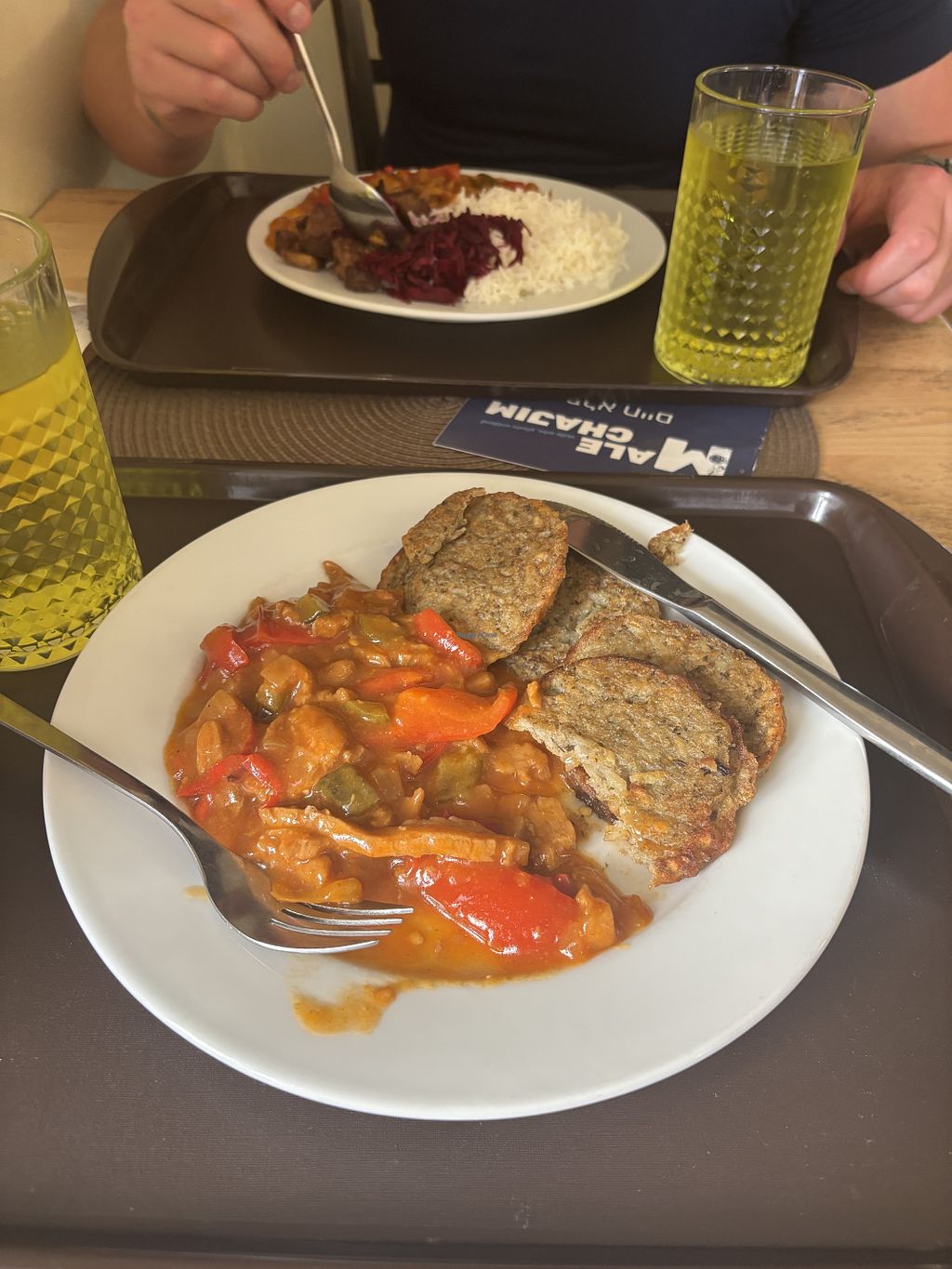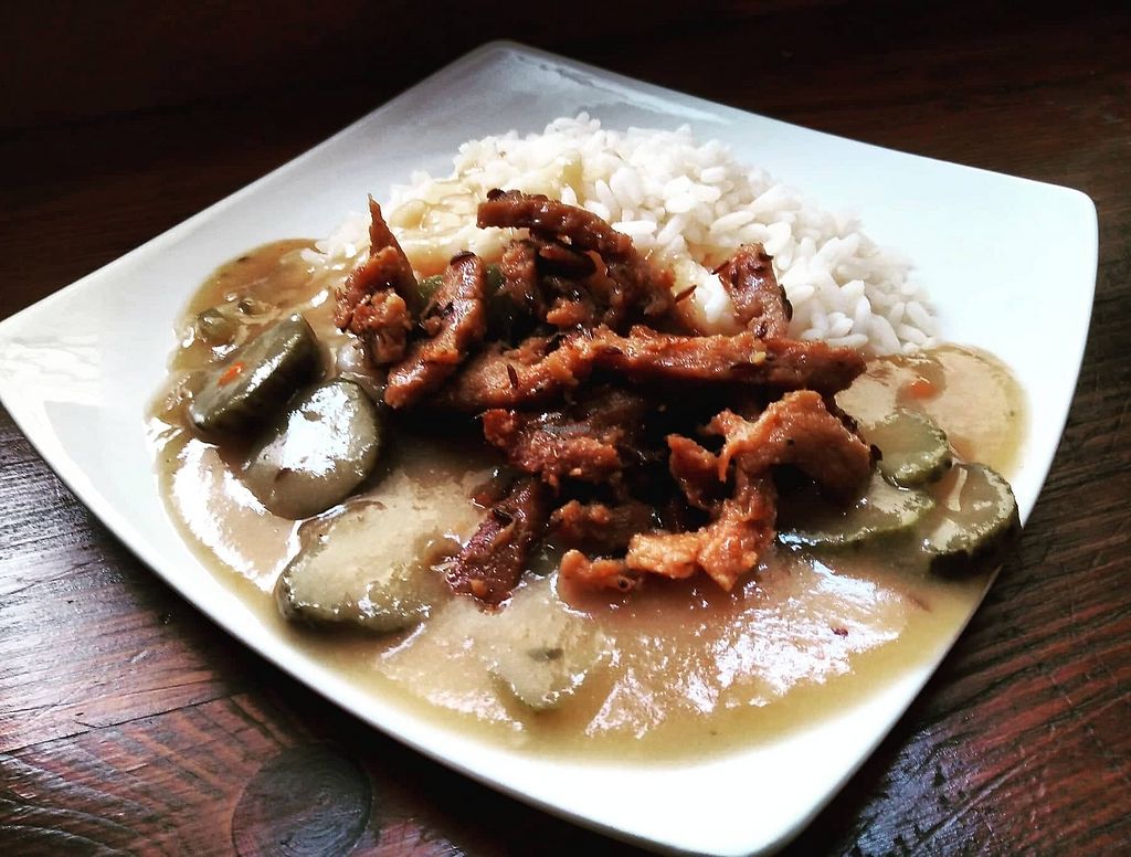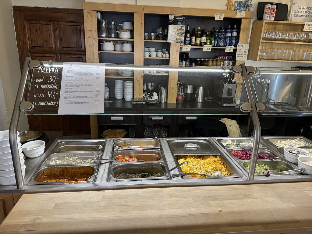 Visiting family in Trebic, they identified this restaurant. It’s a small place in the old town. The ambience is relaxed, with rustic furniture. Folks serve themselves- I took everything on offer, which appeared to be pb sausage, stroganoff sauce, fried potatoes, black lentil dal, etc. I also took an herb soup. It was filling and delicious- I was most impressed with the stroganoff. As noted by someone else, there are some items (fortunately a minority) that are vegetarian- so make sure to ask if your preferred dish is vegan. Btw, server’s English was very limited, but good enough.