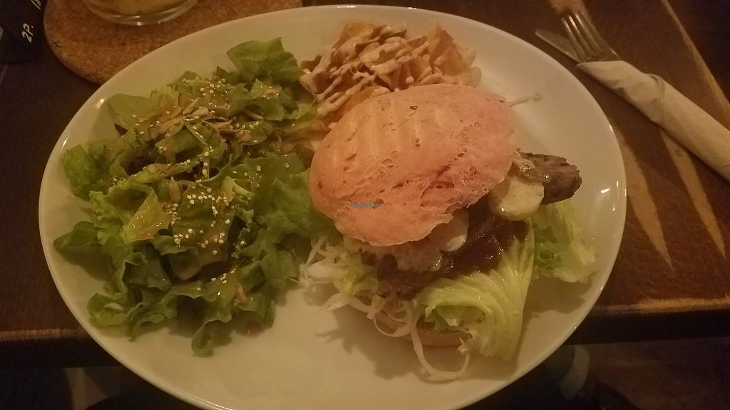 👌🖒We had a tempeh burger, creamy mushrooms with gnocci and two pieces of cake. It was so tasty we will definitely come back.