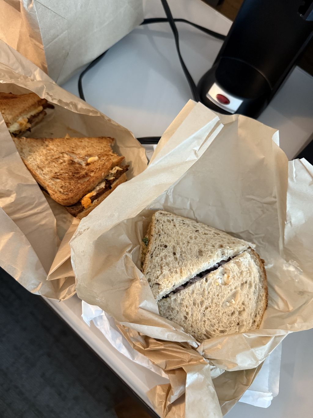 Really good breakfast sandwich. Filling and the ingredients were made in house rather than beyond /impossible.