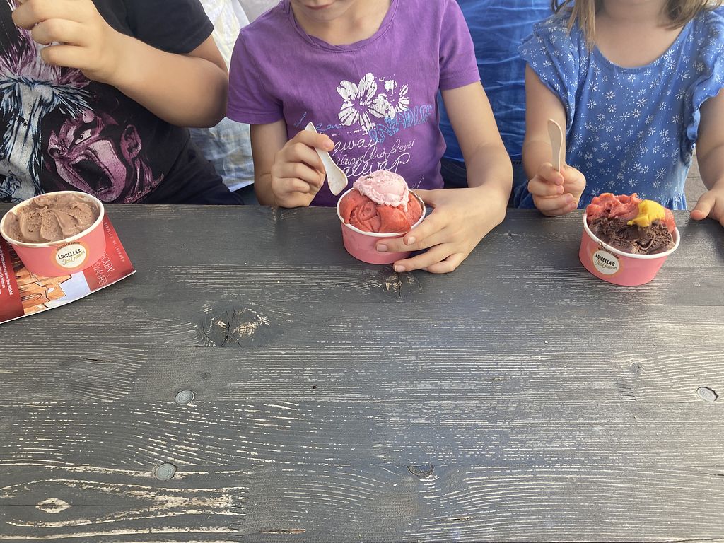I went here with kids. Half the ice creams are vegan. Vegan waffle cone. Edible spoons.