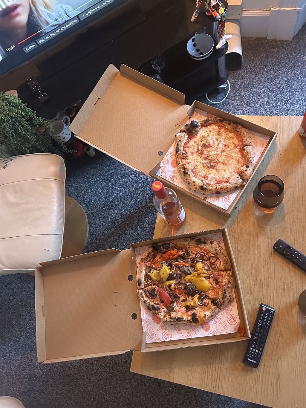 Two pizzas and drinks. Ate in the local park as it’s out of the centre…