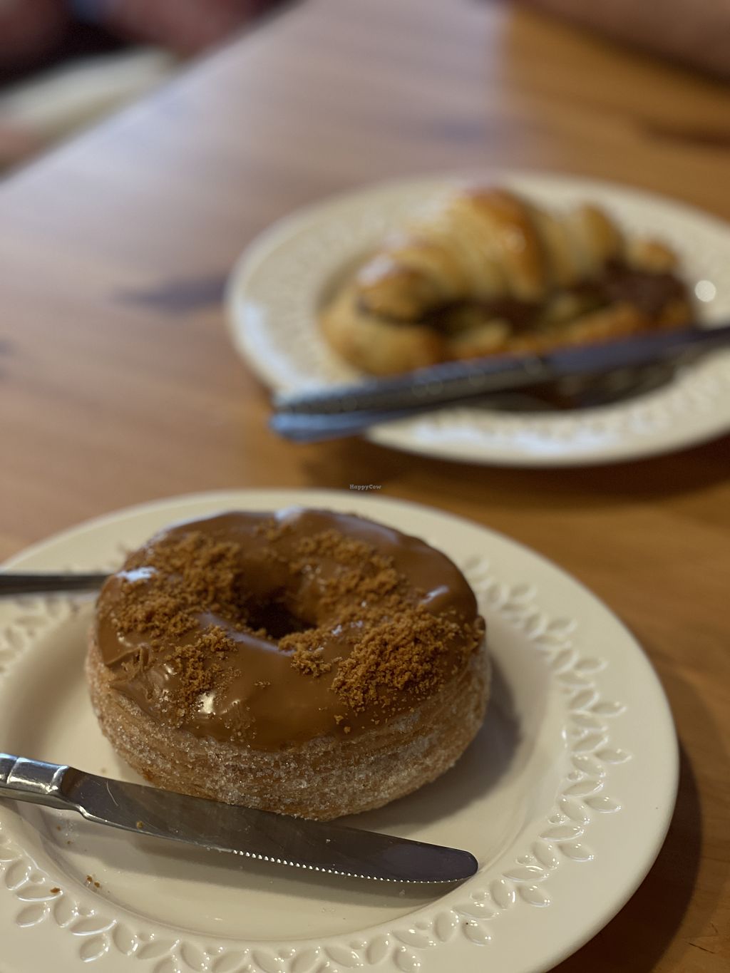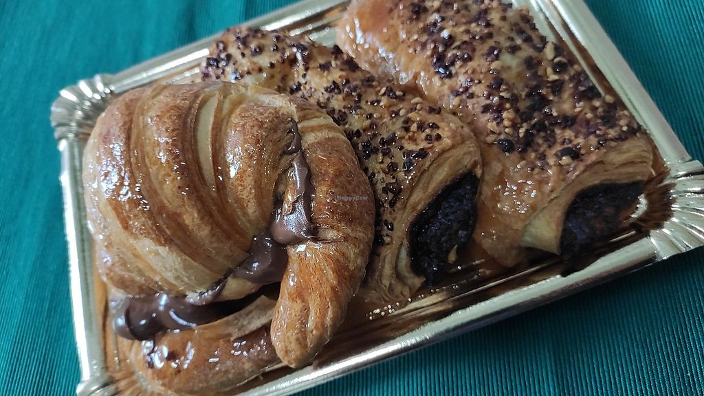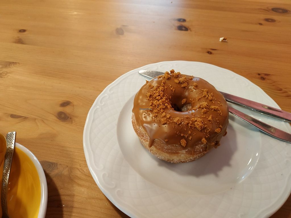Cronuts espectaculares. El resto de dulces veganos también están muy ricos. Tienen varias opciones de leche vegetal y también venden nutella vegana casera al peso!