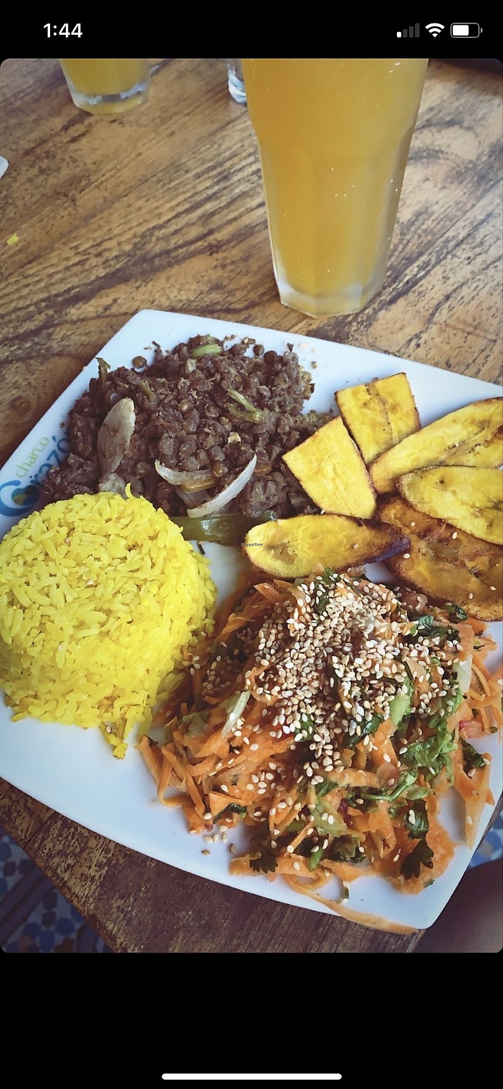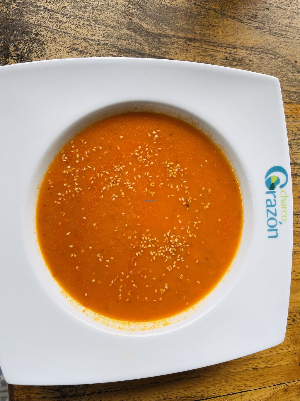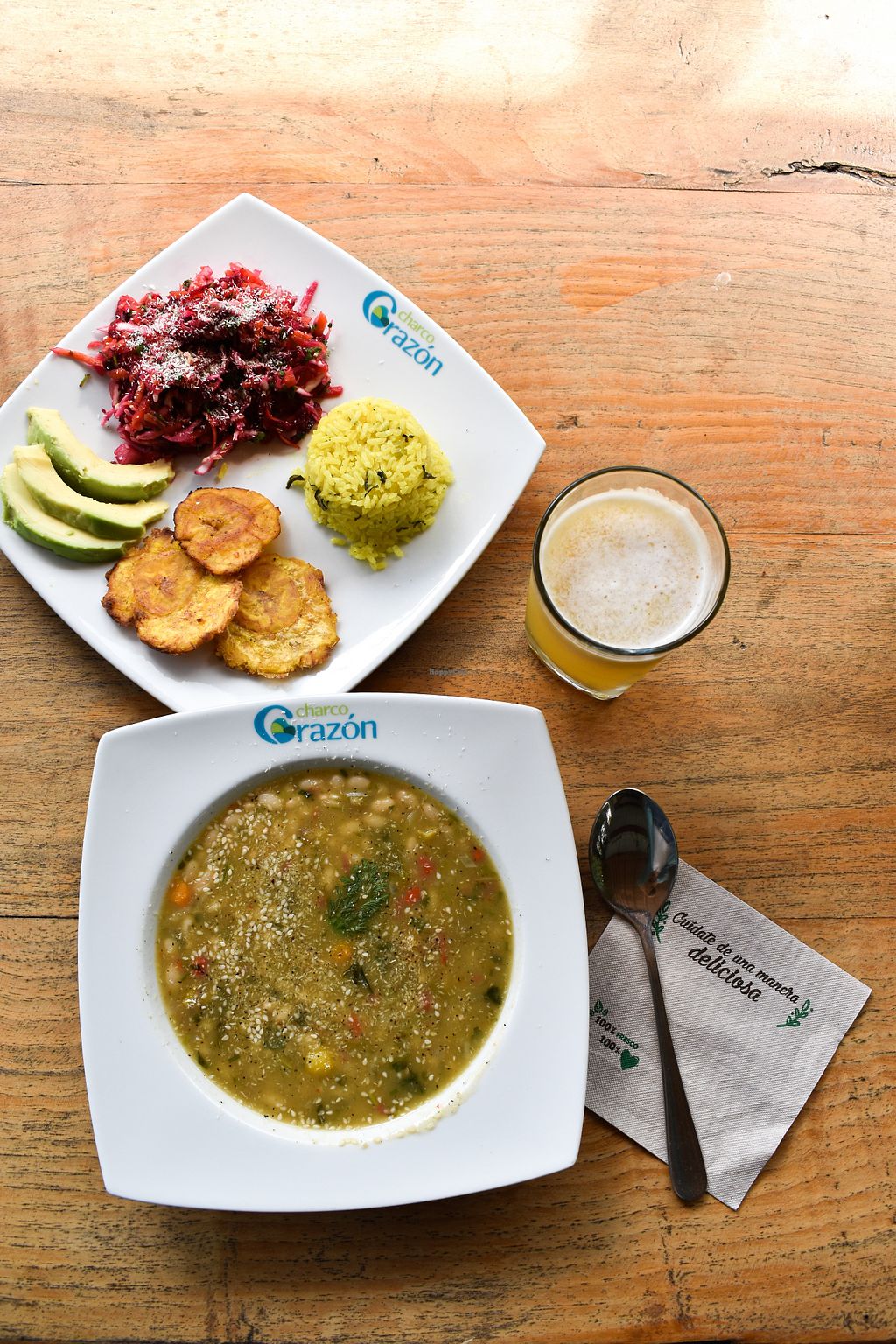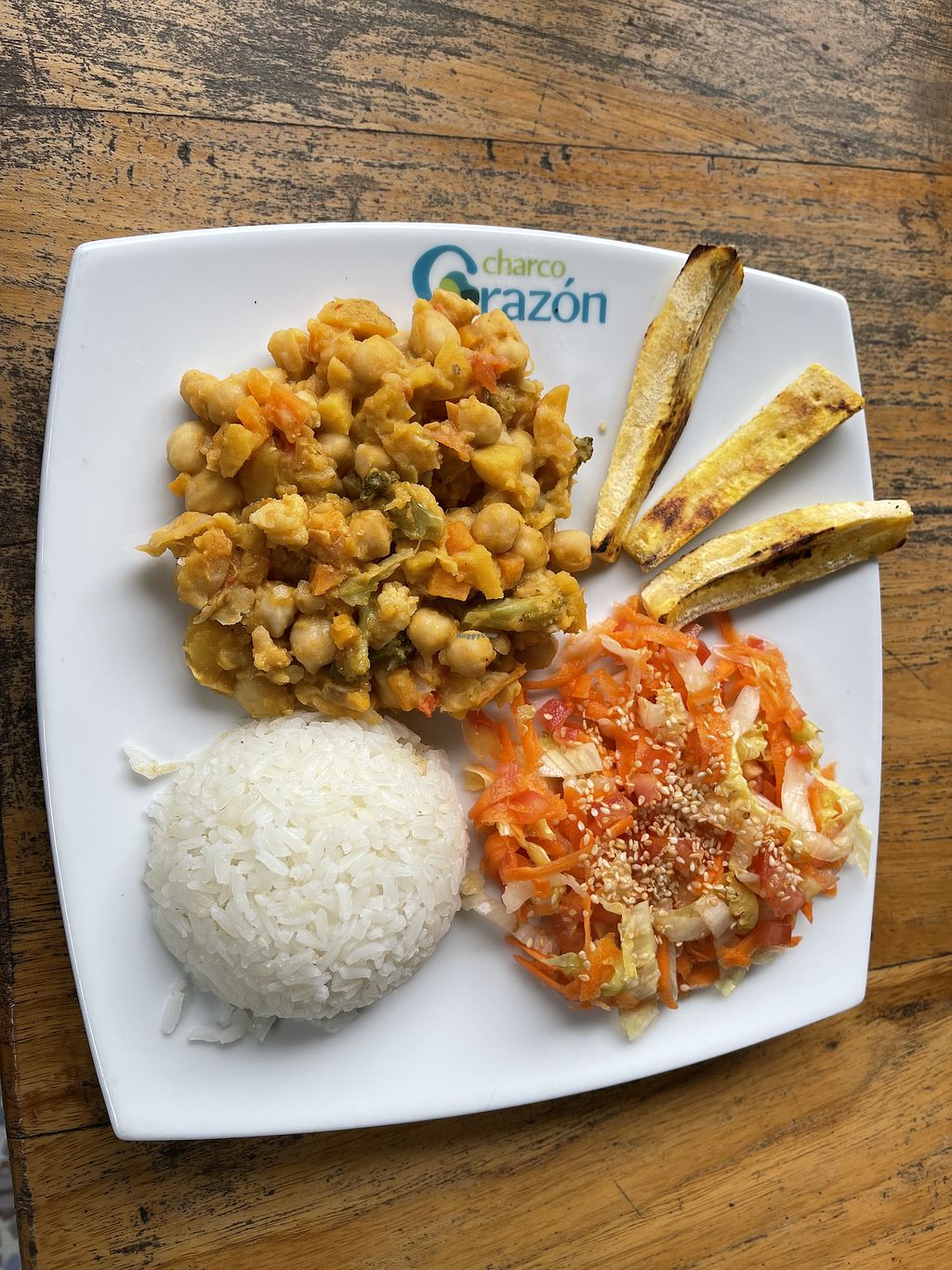 Beautiful setting for lunch. We were the only guests, but they happily made us a vegan menu del día. Cost was 17000 pesos. Included a juice, soup and plate with rice/salad/yuca/chickpeas. Soup was delicious, main plate was very healthy. Would happily eat here again. Is opposite a little waterfall and a nice walk up from the centre. Look for signs to Chaco Corazon.