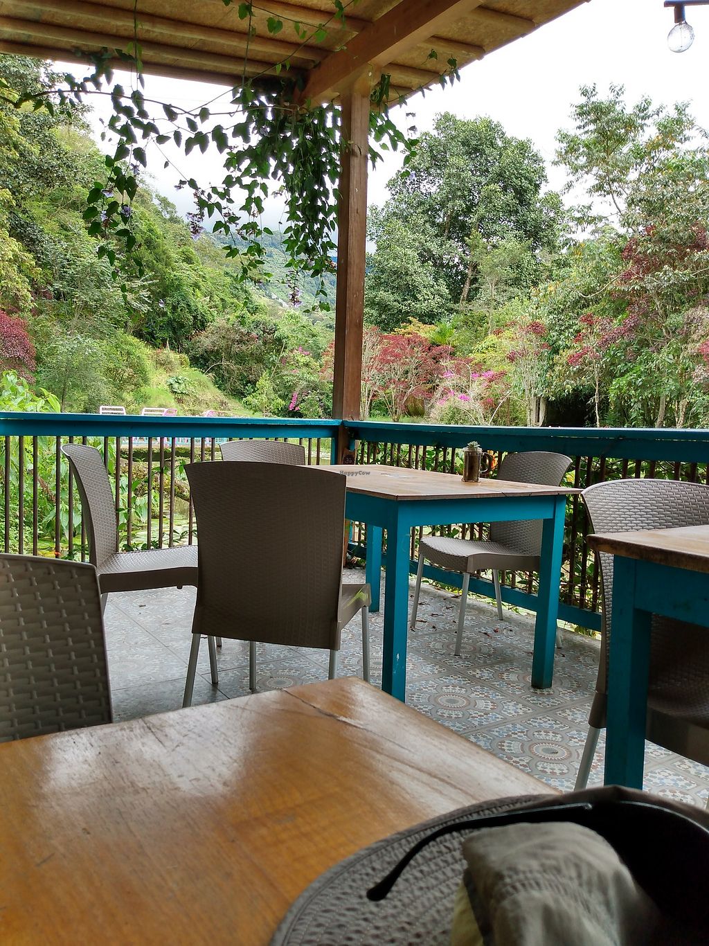 Really nice place right next to the Cascadas del Amor. We got the menu of the day for 20k and it was delicious. The food was a tomato soup, a juice and a big plate with rice, salad, patacones and a curry. Really relaxing atmosphere!