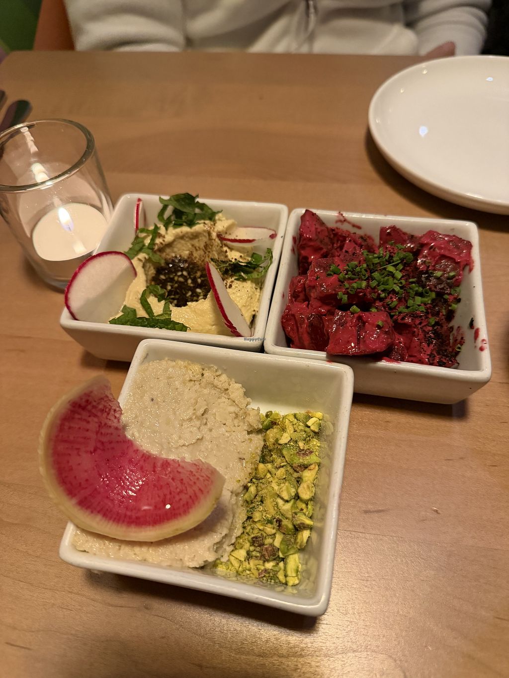 Hummus, beet, & cheese dip