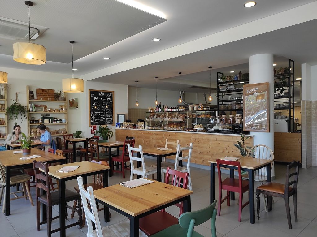 Cappuccino com bebida vegetal e tosta de pão de figos com manteiga de …