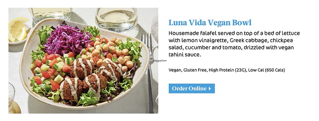 Serves meat, vegan options available. Offers many labeled vegan dishes such as the Luna Lida vegan bowl, lunatic sampler, veggie kabob plate, stuffed grape leaves, falafel, hummus, spicy harissa hummus, and fries. Open Mon-Sun 10:30am-9:00pm.