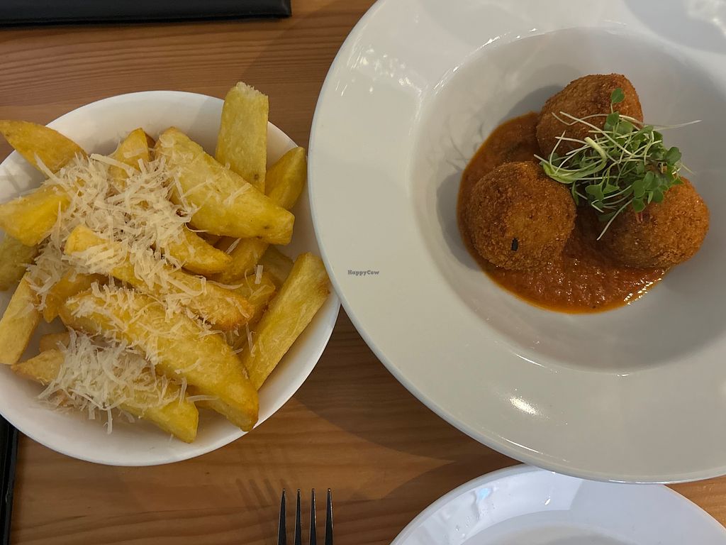 Truffle and parmesan chips and arancini (so good)
